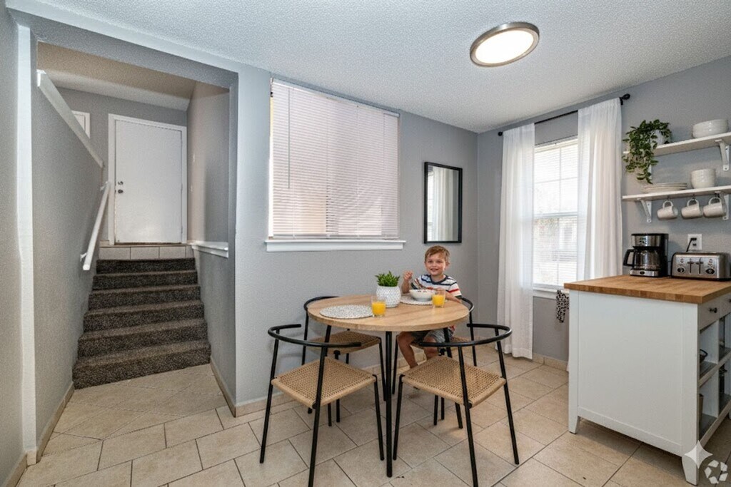 August 15, 2015It,s a nice bigger apartment. The big patio is at the entrance of the apartment. he apartment is a bi-level. The livingroom is off to the right when you enter and stairs that lead down to the dinning room on left and kitchen on the right. Floors are coo to the touch they are ceramic. It has 2 bedroom , 2 bathrooms one has a large closet instead of a shower/tub. The bathroom with closet s a great place to go when it storms and great for storage also. It has a laundry room on site it also ...has a swimming pool which can only be accessed by a key. It does have central air and heating. When I first moved in the first month rent is free. Friendly manager and maintence people. Close to restaurants and shopping stores. Centrally located for your convence.Read MoreReview from Apartments.com