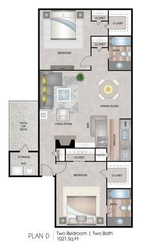 2 Beds, 2 Baths, 1021 sq ftAvailable NowModel Gallery