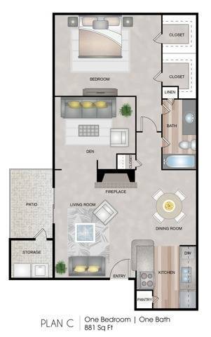 Apartment Model: CFrom $1,3951 Bedroom, 1 Bath, 881 sq ftAvailable Now![]()