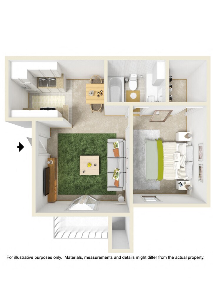 Apartment Model: SMALL ONE BEDROOM ONE BATH$8891 Bedroom, 1 Bath, 550 sq ftAvailable November 15, 2025![]()