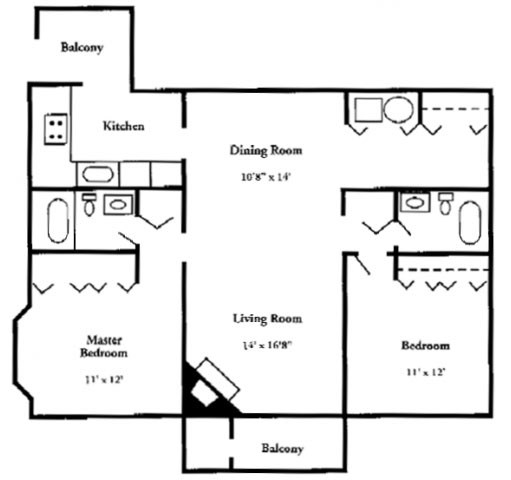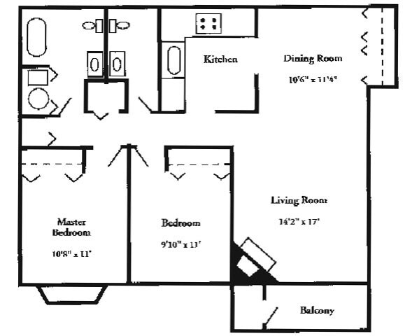 2 Bedroom Traditional - Floorplan 1 ![]()