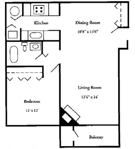 1 Bedroom Traditional - Floorplan 1 ![]()