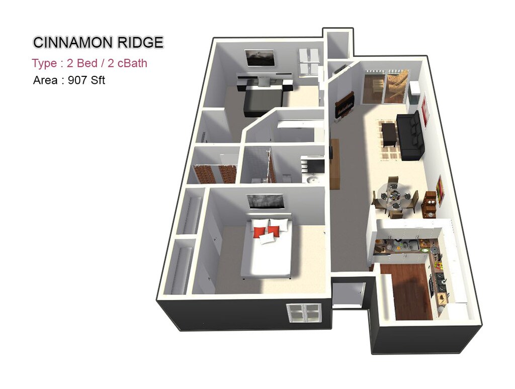 Cinnamon Ridge offers 1 to 3 Bedroom apartments starting from $799 and having 564–1,260 sq ft. Here is the current pricing and availability: