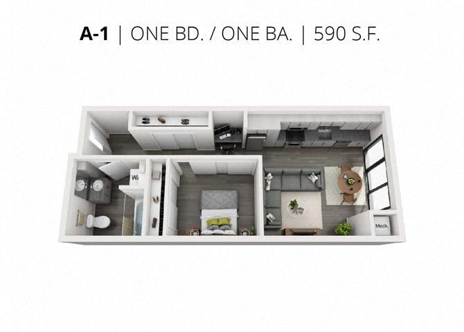 1 Bed, 1 Bath, 590 sq ftAvailable NowCheapest 1 BedroomThis is the cheapest 1 Bedroom at this PropertyModel Gallery