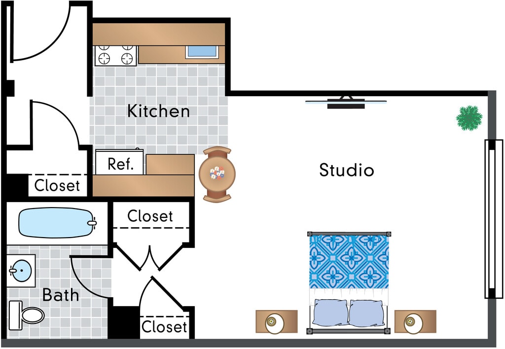 Studio, 1 Bath, 416 sq ftAvailable Oct 31Model Gallery