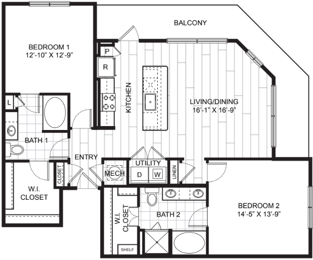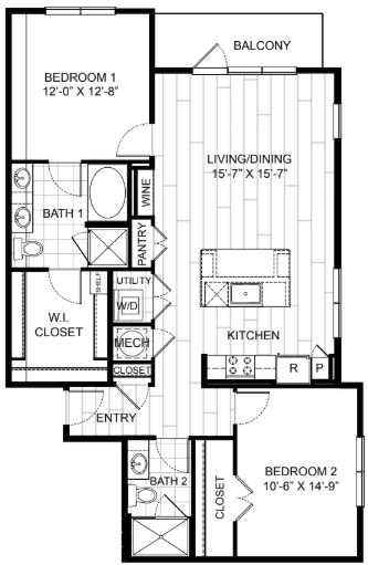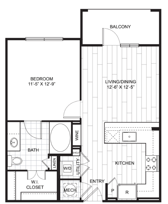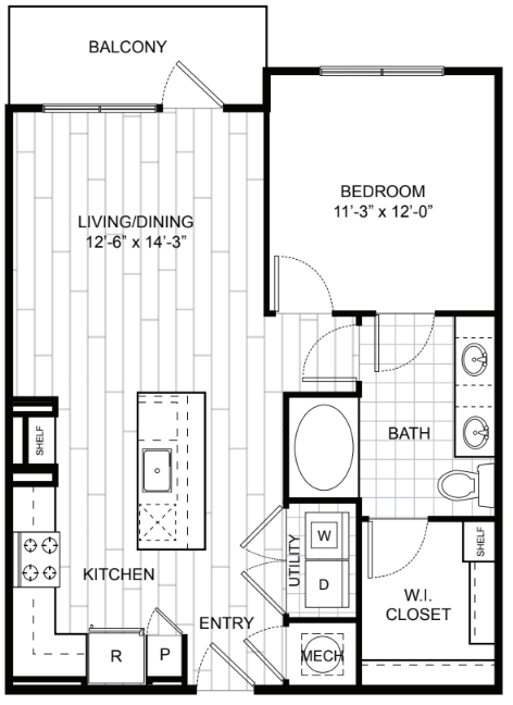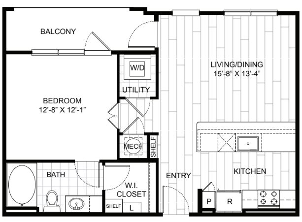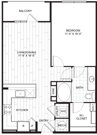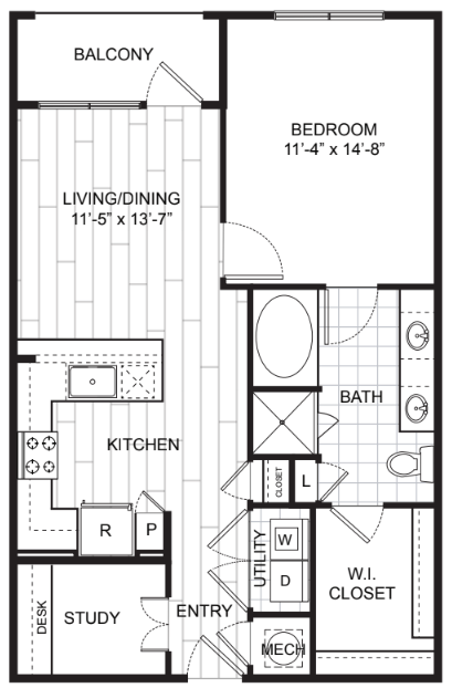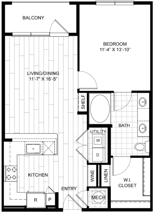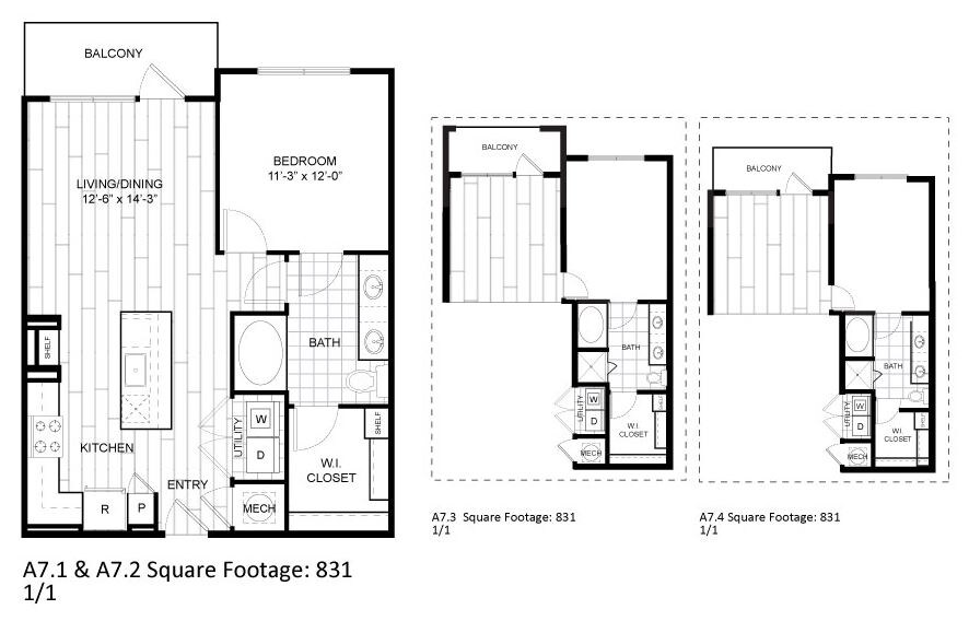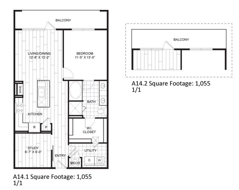 1 Bed, 1 Bath, 604-607 sq ftAvailable NowModel Gallery