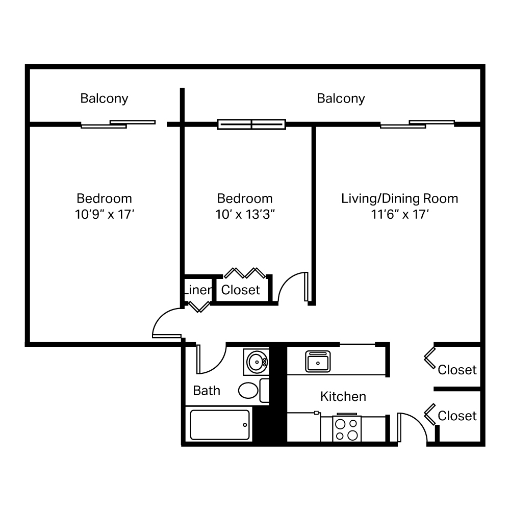 1 Bedroom - Floorplan 1 2 Bedrooms