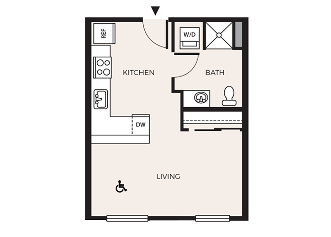S4A - Floorplan 1 Apartment Unit: 305Apartment Model: S4A$1,503Studio, 1 Bath, 429 sq ftAvailable April 7, 2026Floorplan S1