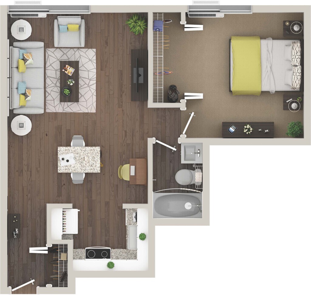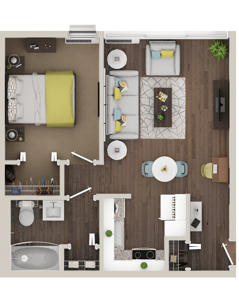 Apartment Model: A3 Aff$1,0451 Bedroom, 1 Bath, 550 sq ftAvailable Now![]()