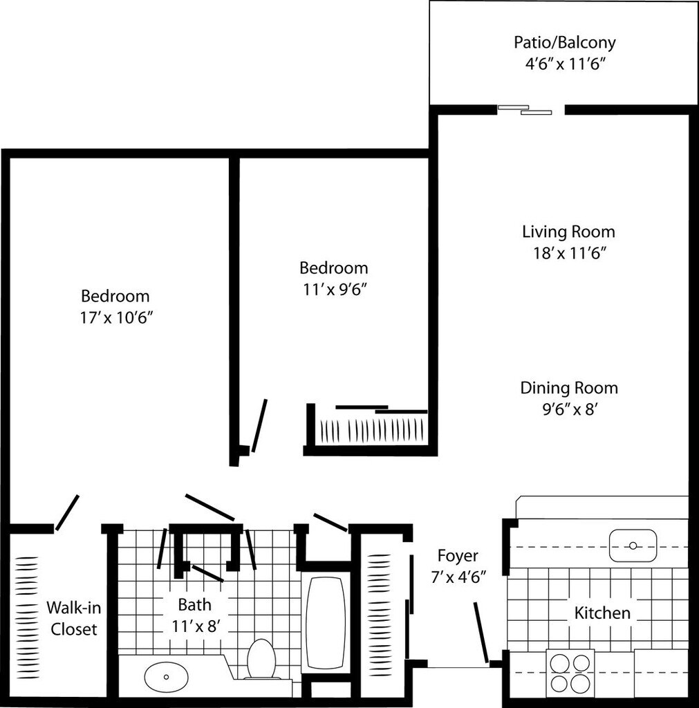 2 Beds, 1 Bath, 925 sq ftPlus FeesAvailable NowAvailability Details