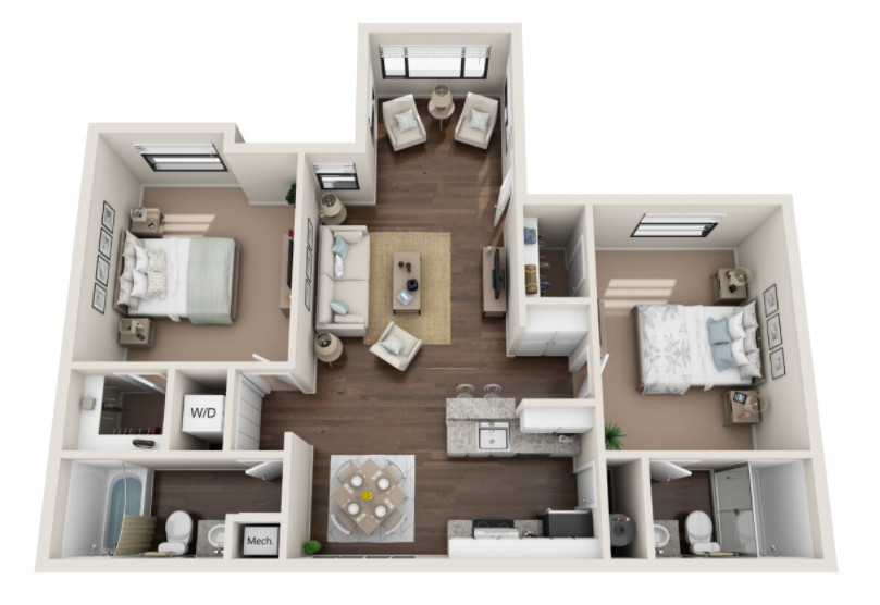 2 Beds, 2 Baths, 862 sq ftAvailable NowModel Gallery