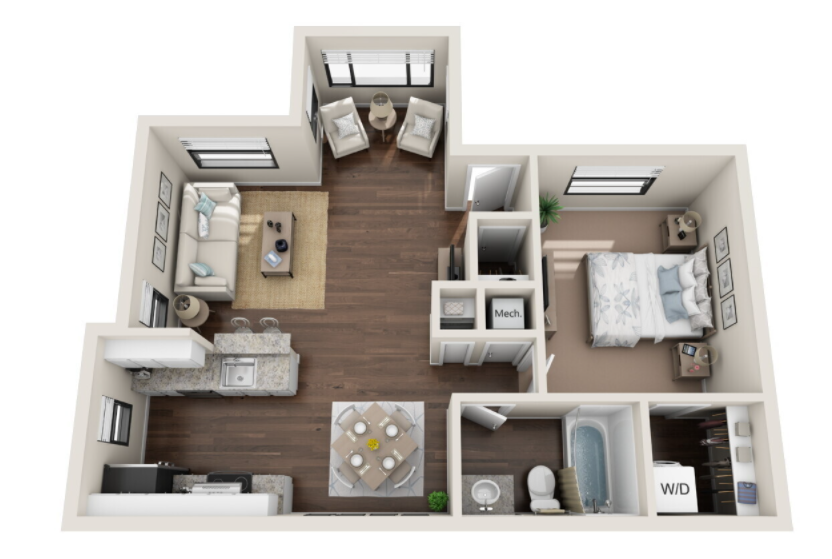 1 Bed, 1 Bath, 700 sq ftAvailable NowModel Gallery