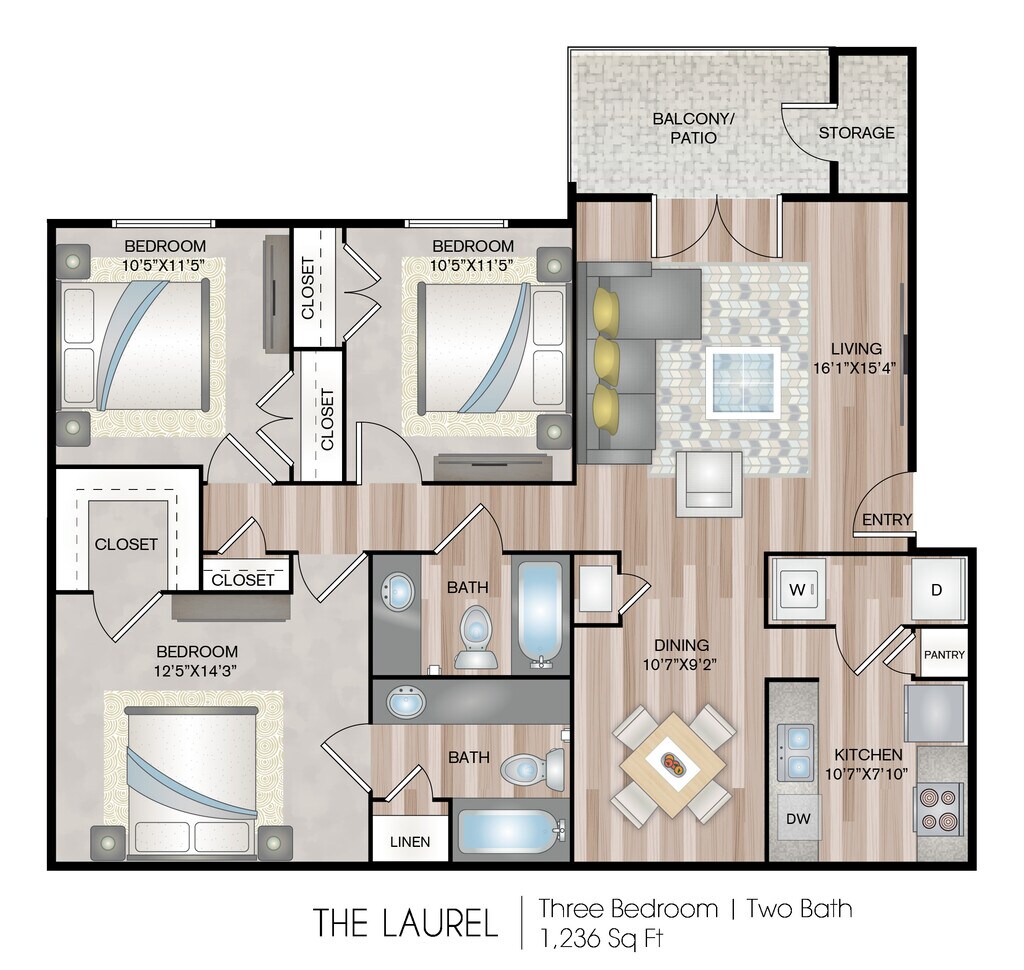 3 Beds, 2 Baths, 1236 sq ftAvailable NowModel Gallery