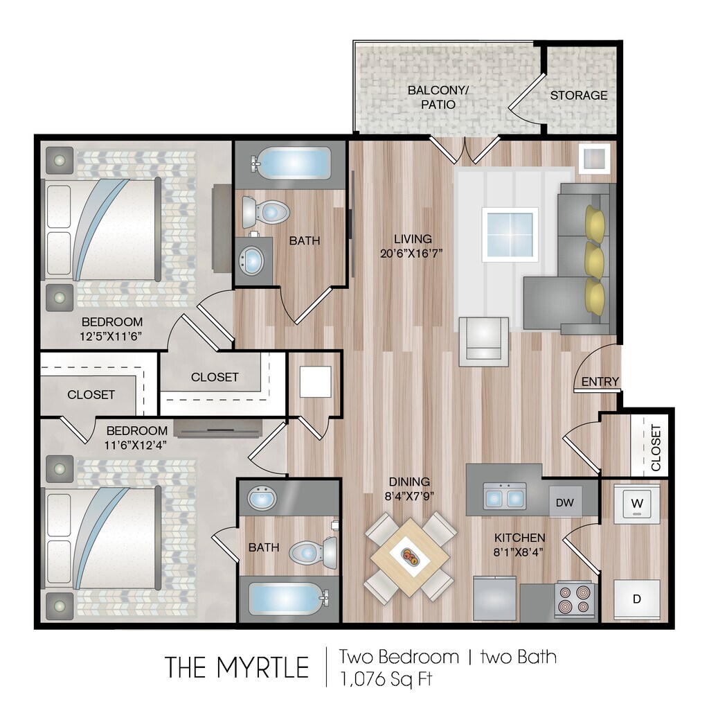 1 Bedroom, 1 Bathroom - Floorplan 1 Apartment Unit: 02-DApartment Model: 1 Bedroom, 1 Bathroom$1,0751 Bedroom, 1 Bath, 711 sq ftAvailable December 27, 20252 Bedrooms