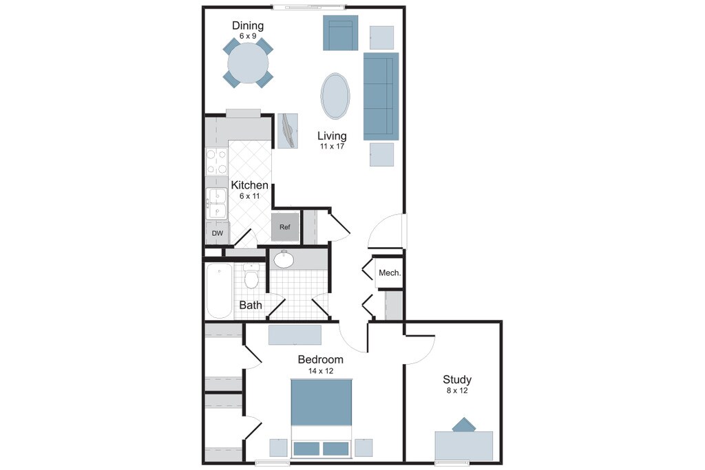 Studio, 1 Bath, 630 sq ftAvailability Details