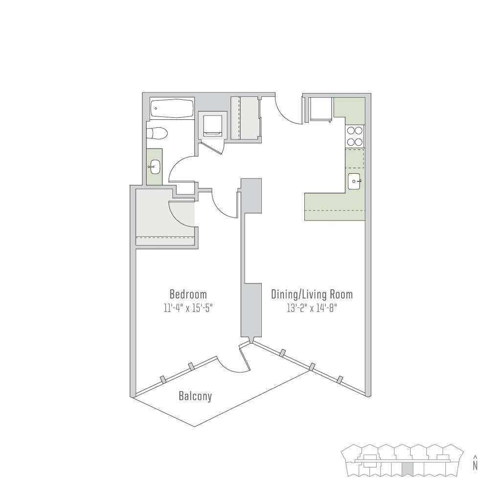 1 Bed, 1 Bath, 577 sq ftModel Gallery