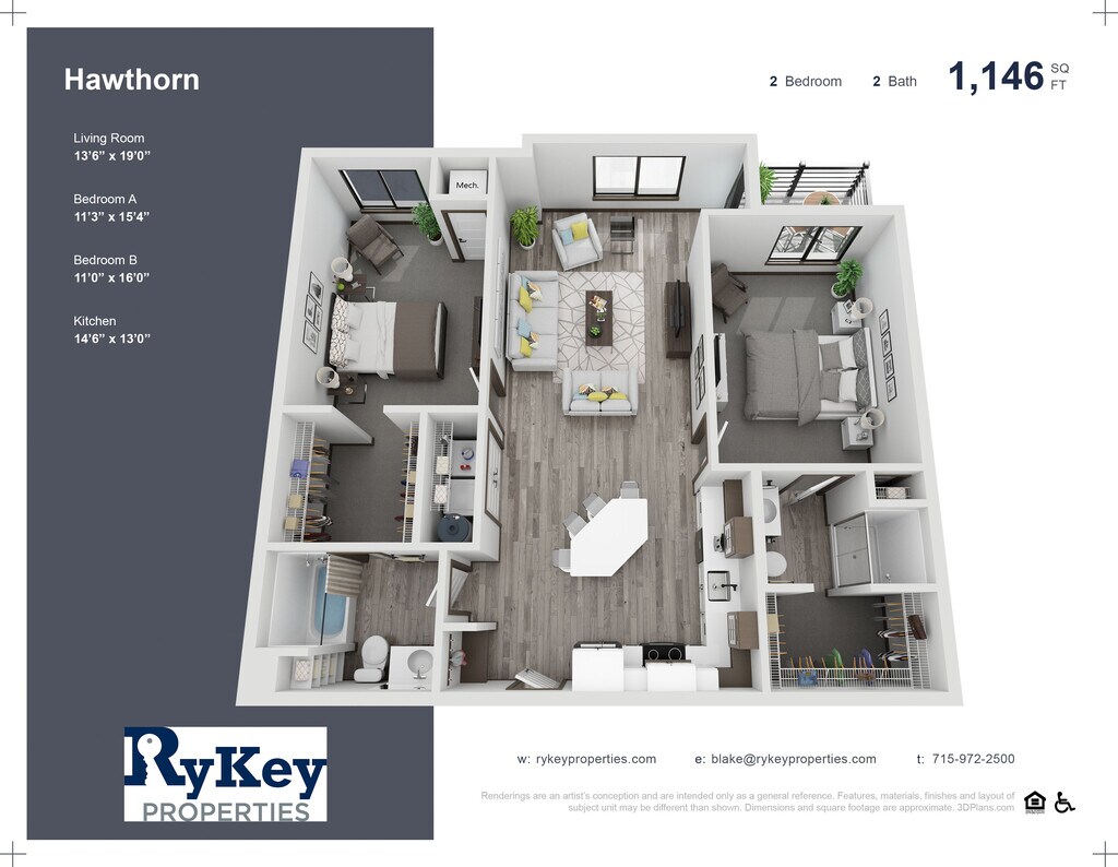 Apartment Unit: 301Apartment Model: Hawtharn$1,3952 Bedroom, 2 Bath, 1146 sq ftAvailable Now