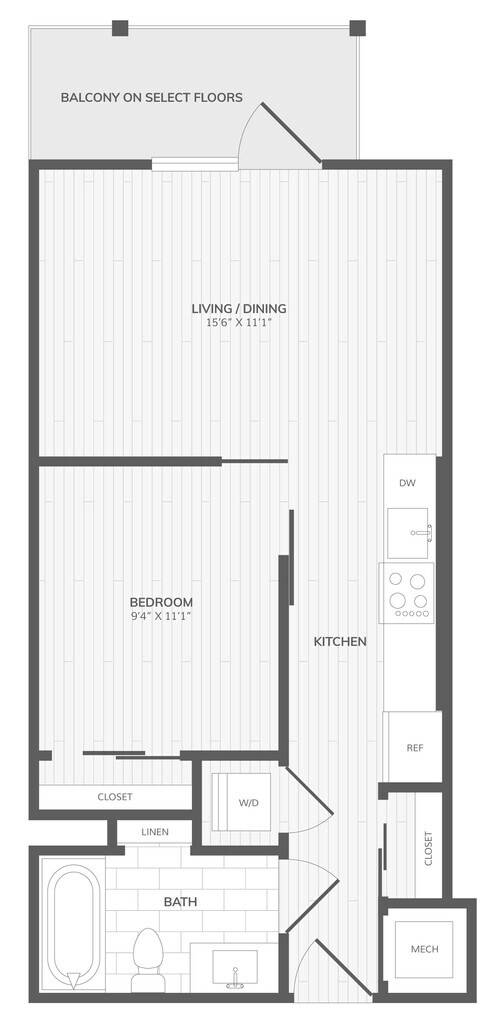 Studio, 1 Bath, 429 sq ftModel Gallery