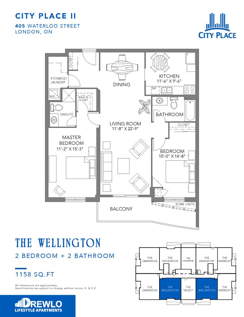 Concierge Services / Security Guard Now Available 24/7! Luxury Updated 1 & 2 Bedroom Apartments in Downtown London Looking for Downtown London apartments with modern updates and unbeatable amenities? Drewlo Holdings' City Place II offers updated one- and two-bedroom apartments in one of the most sought-after locations in the city. These iconic high-rise buildings provide stunning panoramic views of Downtown London and Victoria Park, putting you at the center of everything the city has to offer. Prime Downtown Location Live steps away from Canada Life Place, The Grand Theatre, top restaurants, shopping, entertainment, and year-round festivals. Covent Garden Market is just a 10-minute walk away, while London's first-ever flex street, Dundas Place, brings a vibrant energy to your doorstep. Enjoy the convenience of walking to local cafes, restaurants, and businesses, making every day more enjoyable and stress-free. Spacious, Modern Suites Whether you're a professional, downsizing from a home, or just looking for more space, our large one-bedroom apartments start at 796 sq. ft., while two-bedroom apartments start at 1,158 sq. ft. Each suite is designed with modern finishes and top-tier amenities, including: Eat-in Kitchens for comfortable dining In-Suite Laundry for ultimate convenience Walk-In Closets & Oversized Balconies with breathtaking views Updated Features to enhance your living experience Unmatched Amenities City Place II offers exclusive amenities you won’t find in smaller buildings, including: Fitness Room – Save on a gym membership Indoor Saltwater Pool, Hot Tub & Sauna – Relax and unwind Underground Parking & Easy Transit Access – Multiple bus stops right outside