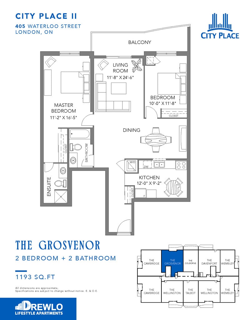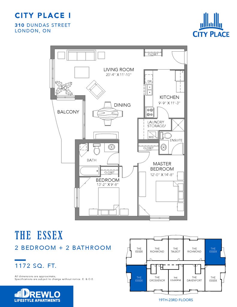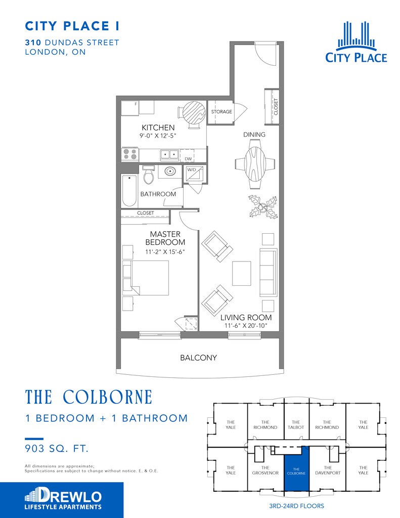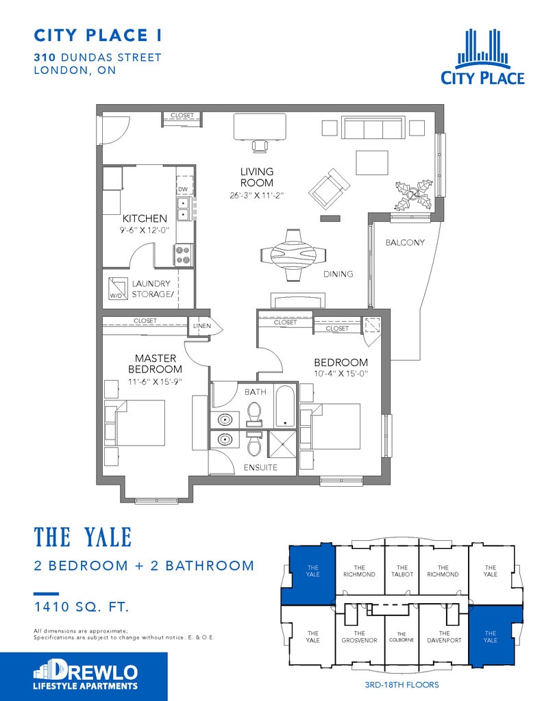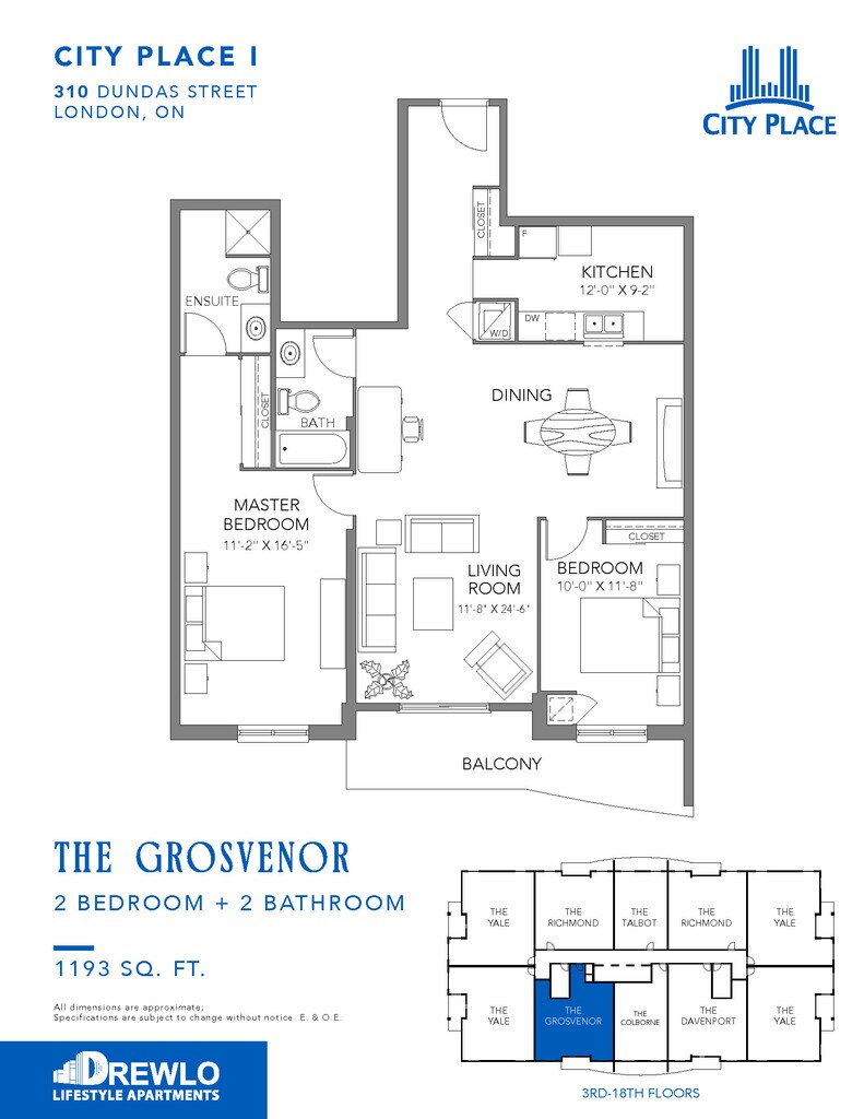 Luxury Updated 1 & 2 Bedroom Apartments in Downtown London - Concierge Services / Security Guard Now Available 24/7! Looking for Downtown London apartments with modern updates and unbeatable amenities? Drewlo Holdings' City Place I offers updated one- and two-bedroom apartments in one of the most sought-after locations in the city. These iconic high-rise buildings provide stunning panoramic views of Downtown London and Victoria Park, putting you at the center of everything the city has to offer. Prime Downtown Location Live steps away from Canada Life Place, The Grand Theatre, top restaurants, shopping, entertainment, and year-round festivals. Covent Garden Market is just a 10-minute walk away, while London's first-ever flex street, Dundas Place, brings a vibrant energy to your doorstep. Enjoy the convenience of walking to local cafes, restaurants, and businesses, making every day more enjoyable and stress-free. Spacious, Modern Suites Whether you're a professional, downsizing from a home, or just looking for more space, our large one-bedroom apartments start at 796 sq. ft., while two-bedroom apartments start at 1,158 sq. ft. Each suite is designed with modern finishes and top-tier amenities, including: Eat-in Kitchens for comfortable dining In-Suite Laundry for ultimate convenience Walk-In Closets & Oversized Balconies with breathtaking views Updated Features to enhance your living experience Unmatched Amenities City Place I offers exclusive amenities you won’t find in smaller buildings, including: Fitness Room – Save on a gym membership Indoor Saltwater Pool, Hot Tub & Sauna – Relax and unwind Underground Parking & Easy Transit Access – Multiple bus stops right outside Find Your Perfect Floor Plan With nine spacious layouts to choose from, there’s an option for everyone. Whether you’re looking for a cozy one-bedroom or a sprawling two-bedroom suite, City Place has it all. Book a Tour Today! Discover why City Place I is the premier choice for Downtown London apartments. Contact us now to schedule a viewing and find your dream home in the heart of the city! PLUS! For each month that you rent with Drewlo Holdings, you will receive $400 - for a maximum of $15,000 - towards the purchase of a brand new home or townhome from the award winning Ironstone Building Company. Learn more about the RENT. SAVE. OWN. program.