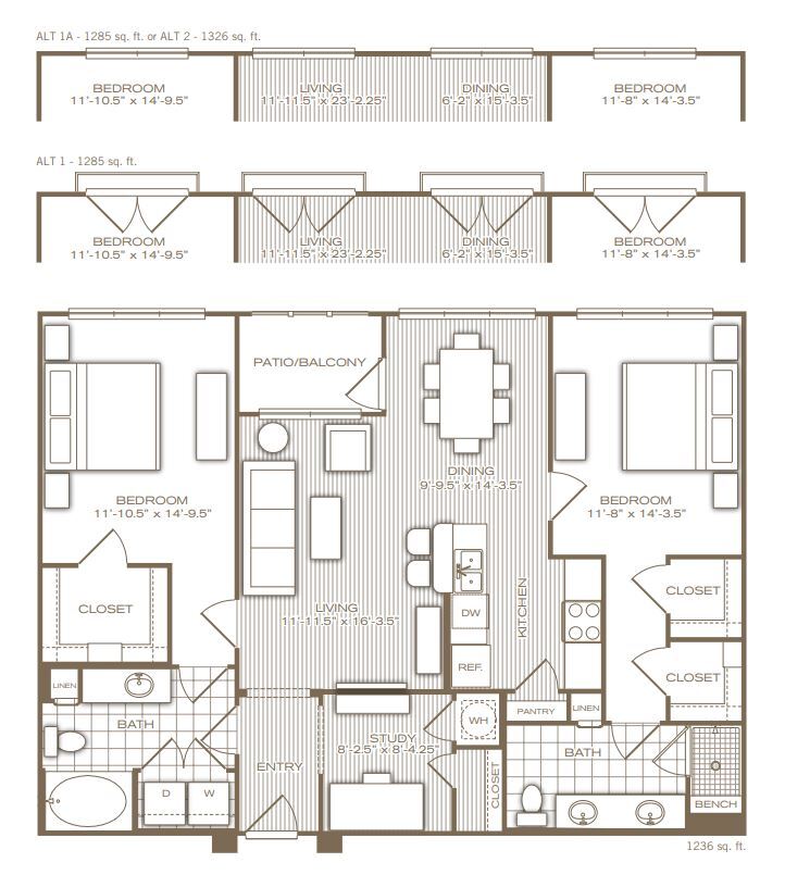 1 Bed, 1 Bath, 974 sq ftAvailable NowLargest 1 BedroomThis is the largest 1 Bedroom at this PropertyModel Gallery