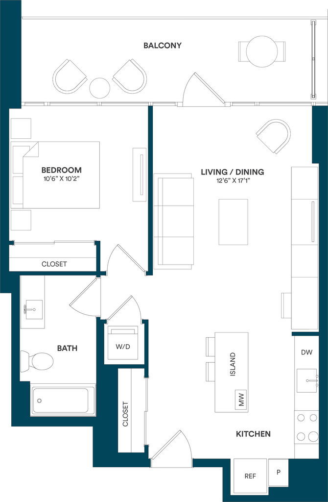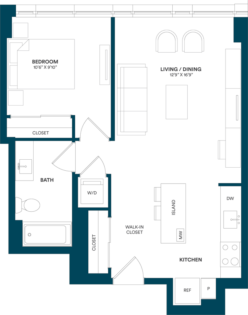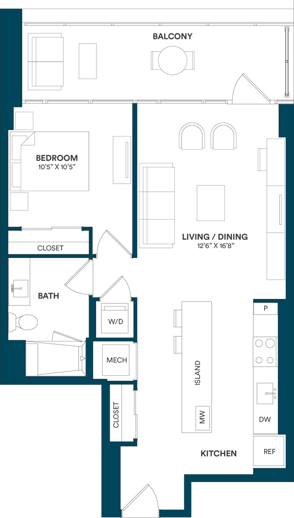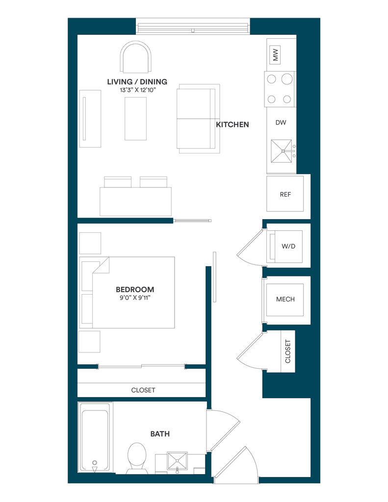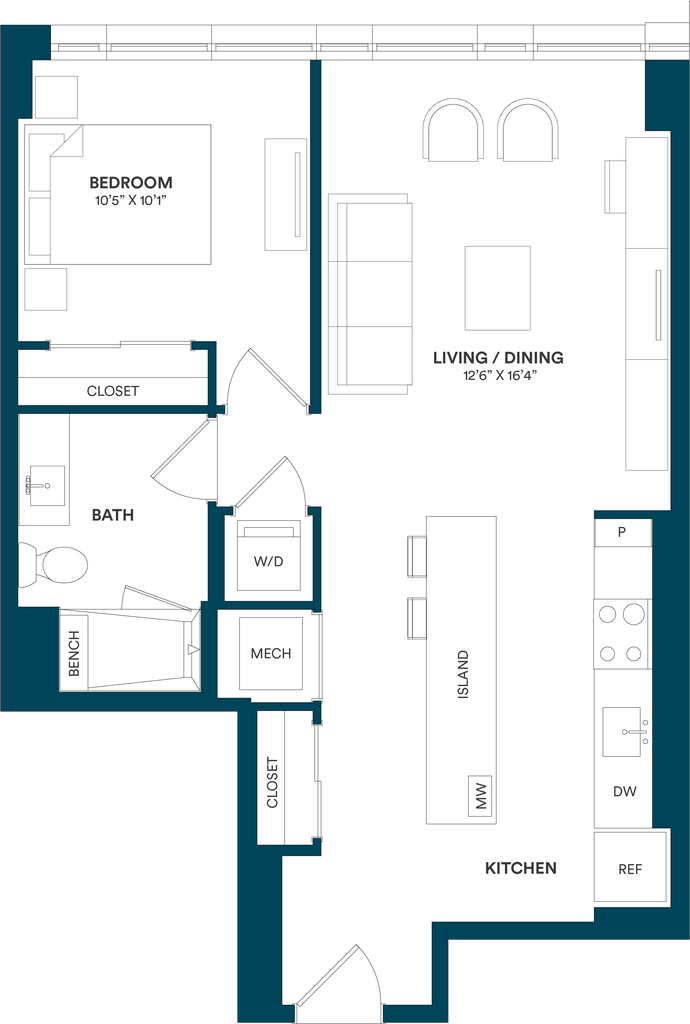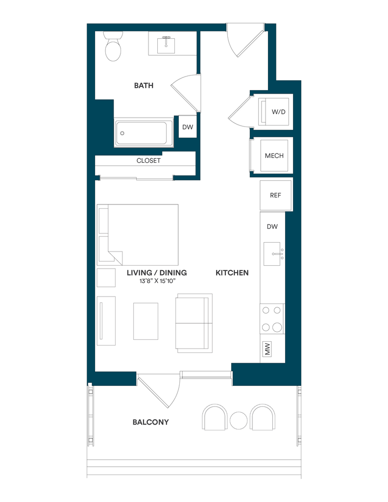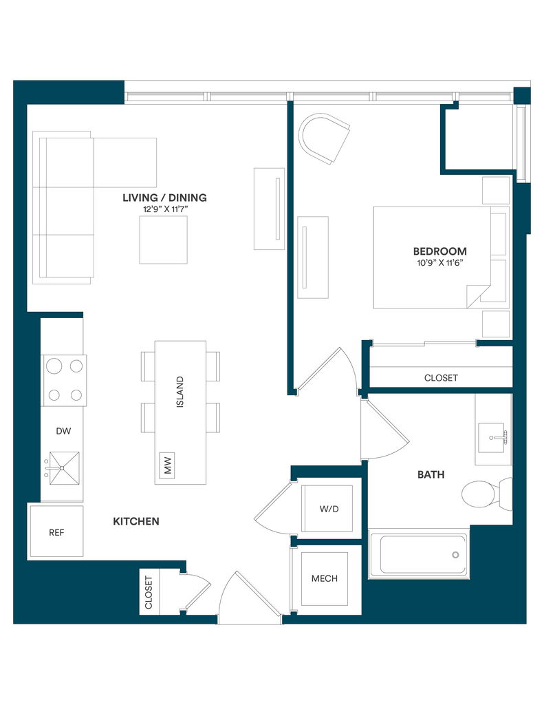 Studio-C TYP 12 - Floorplan Apartment Unit: C-712Apartment Model: Studio-C TYP 12$2,169Studio, 1 Bath, 499 sq ftAvailable Now![]()