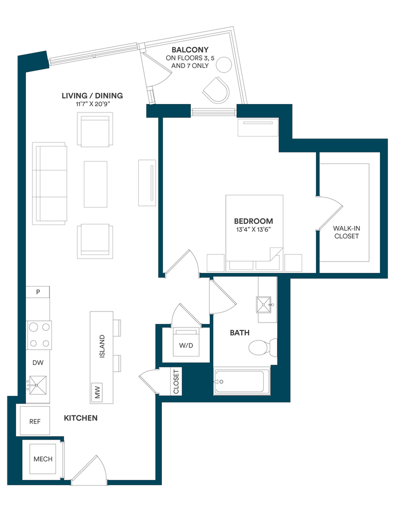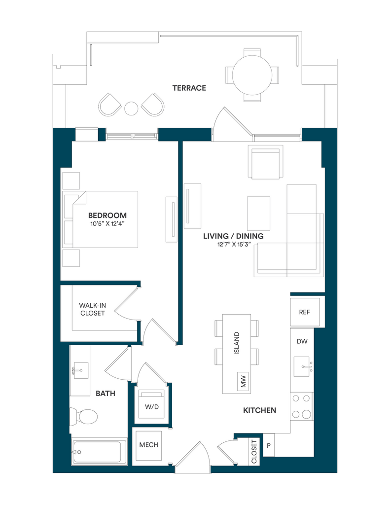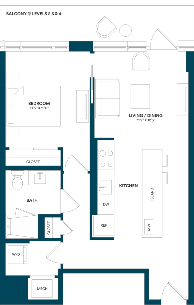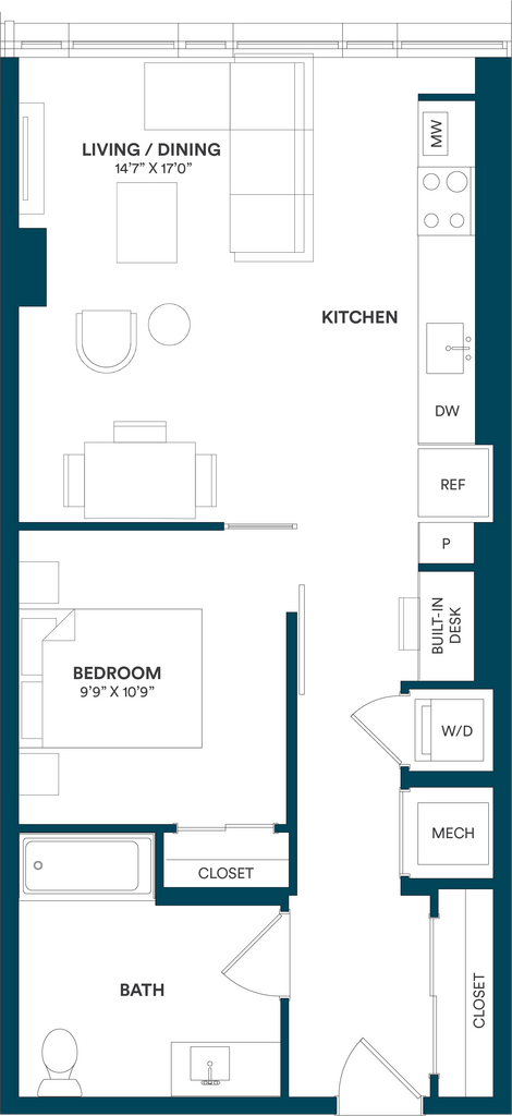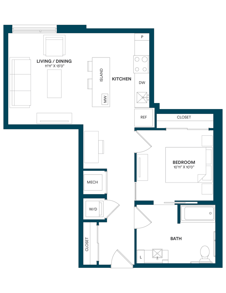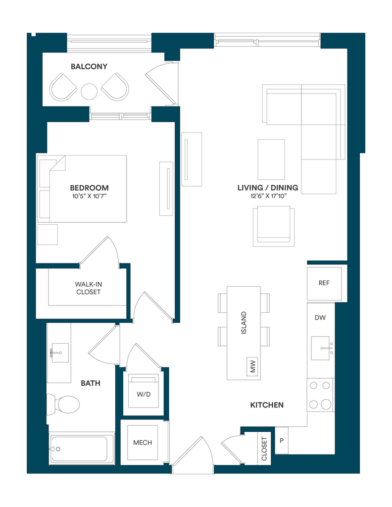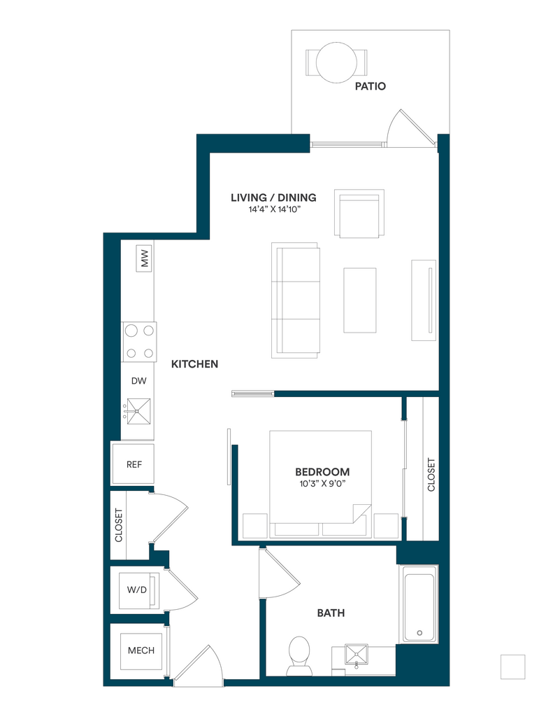 Studio-C TYP 12 - Floorplan Apartment Unit: C-712Apartment Model: Studio-C TYP 12$2,169Studio, 1 Bath, 499 sq ftAvailable Now![]()