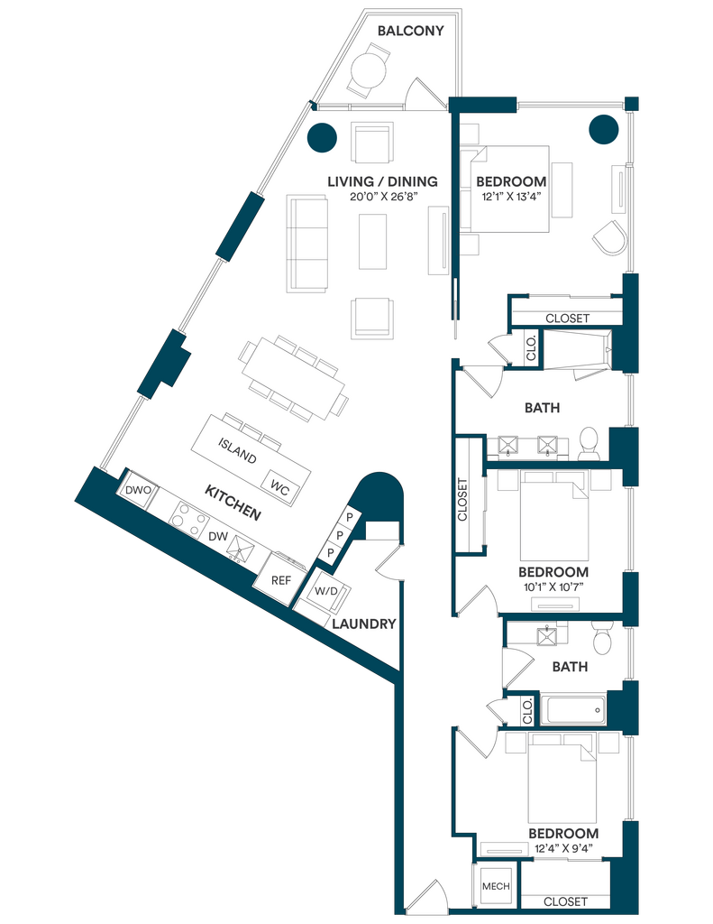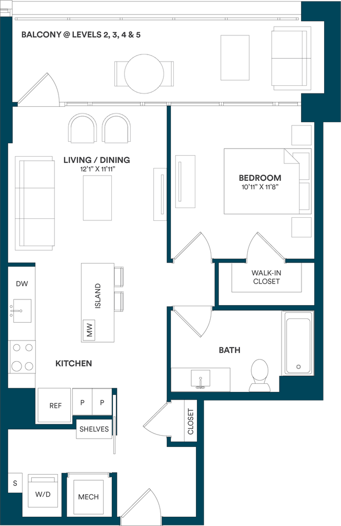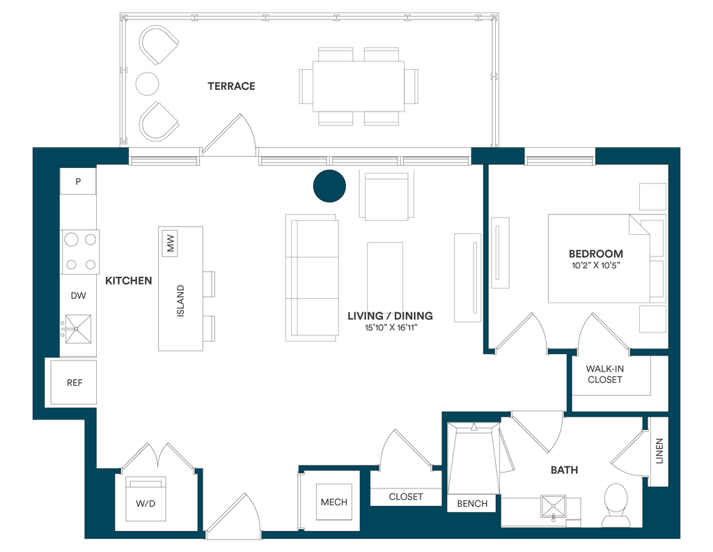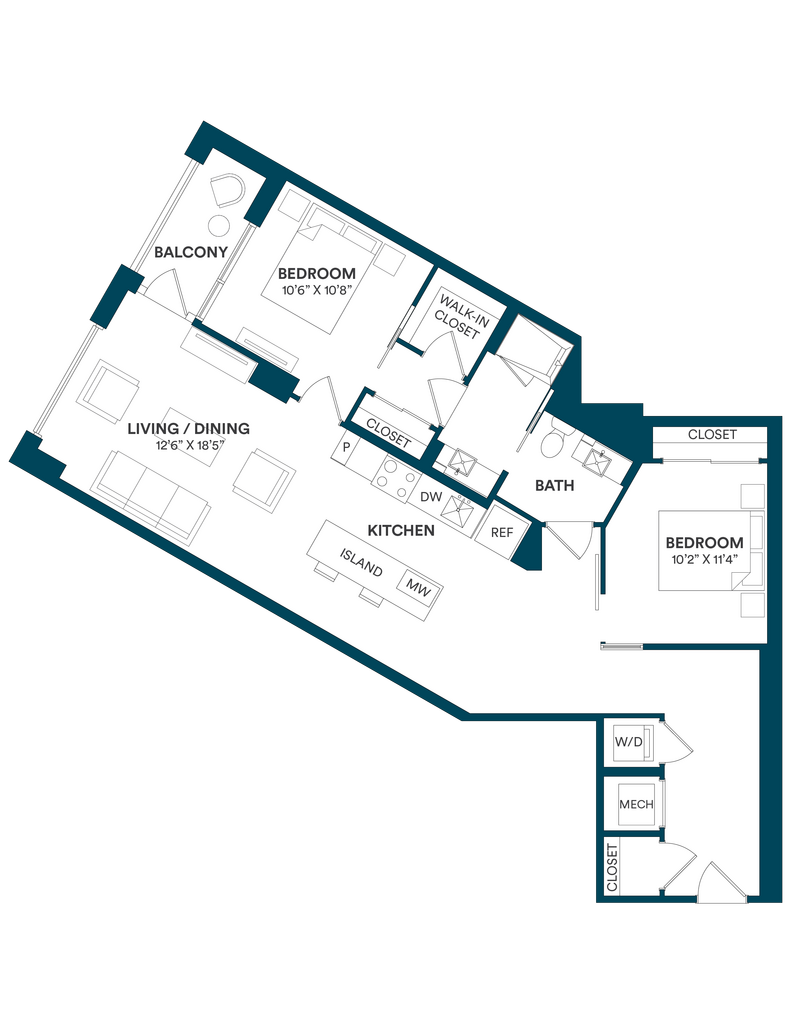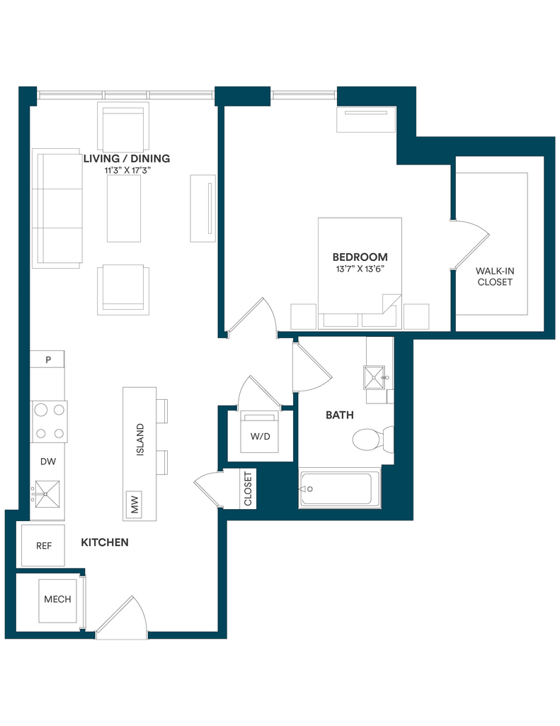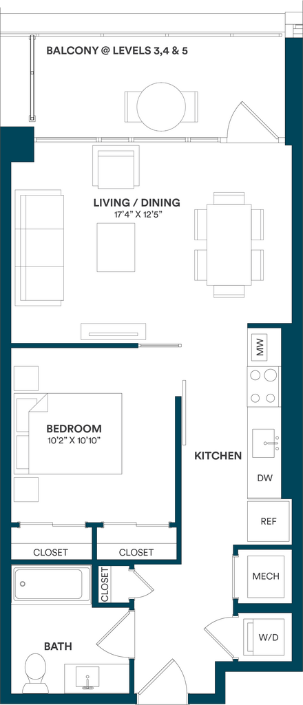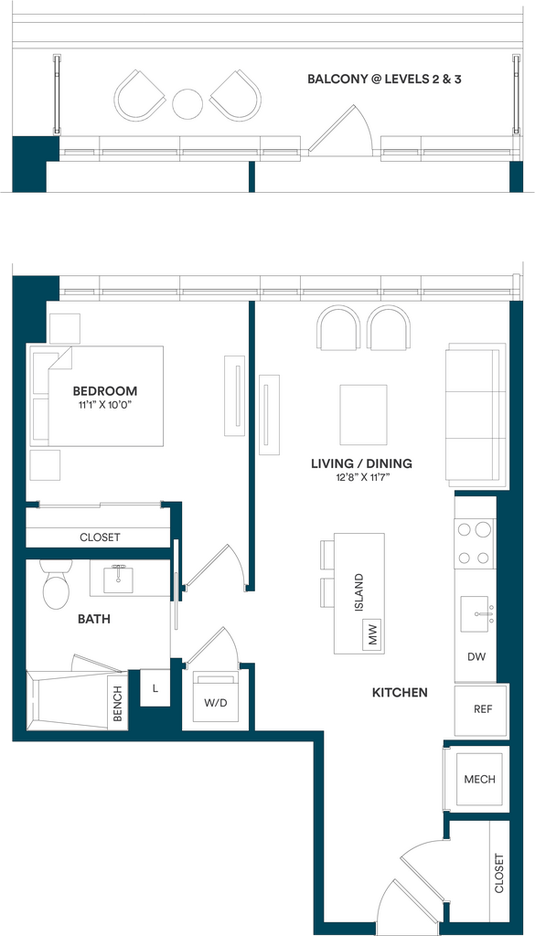 Studio-C TYP 12 - Floorplan Apartment Unit: C-712Apartment Model: Studio-C TYP 12$2,169Studio, 1 Bath, 499 sq ftAvailable Now![]()