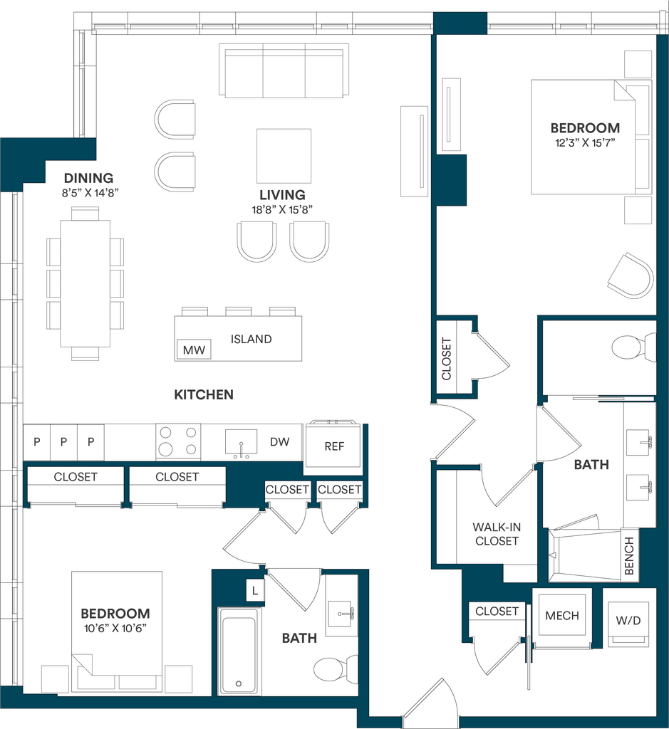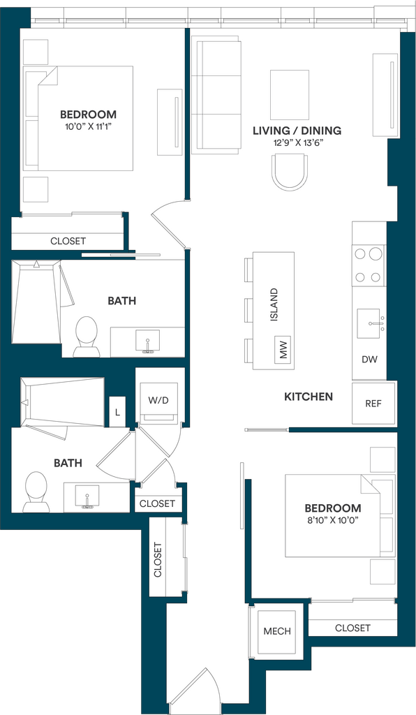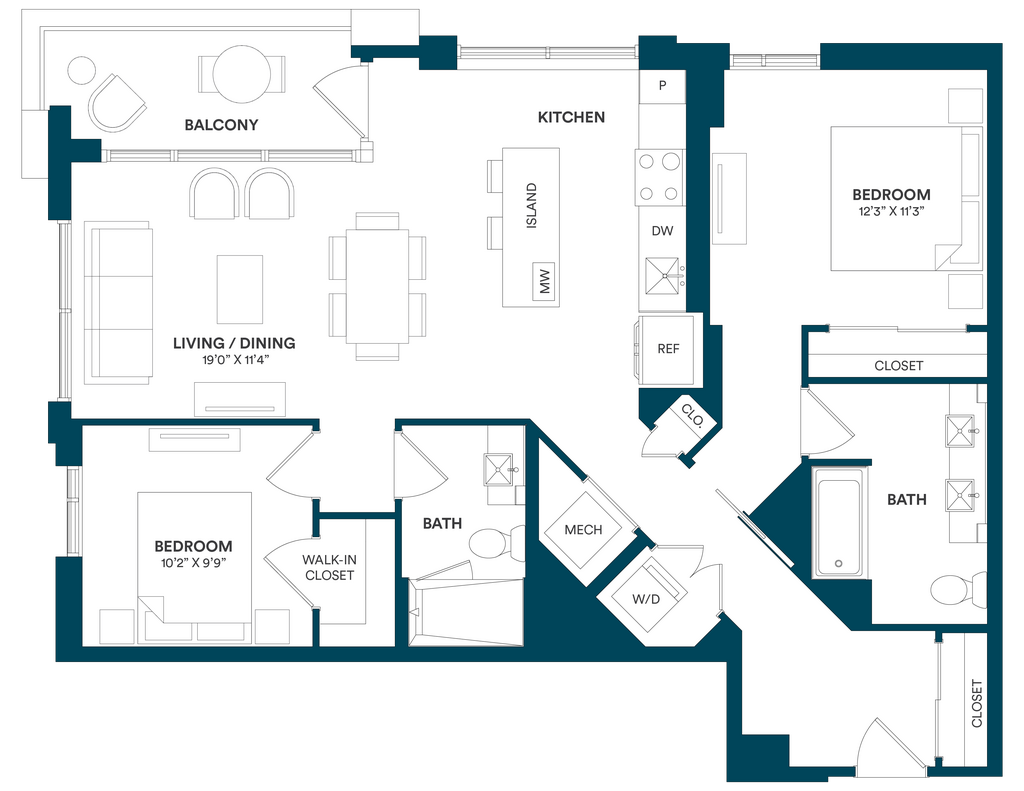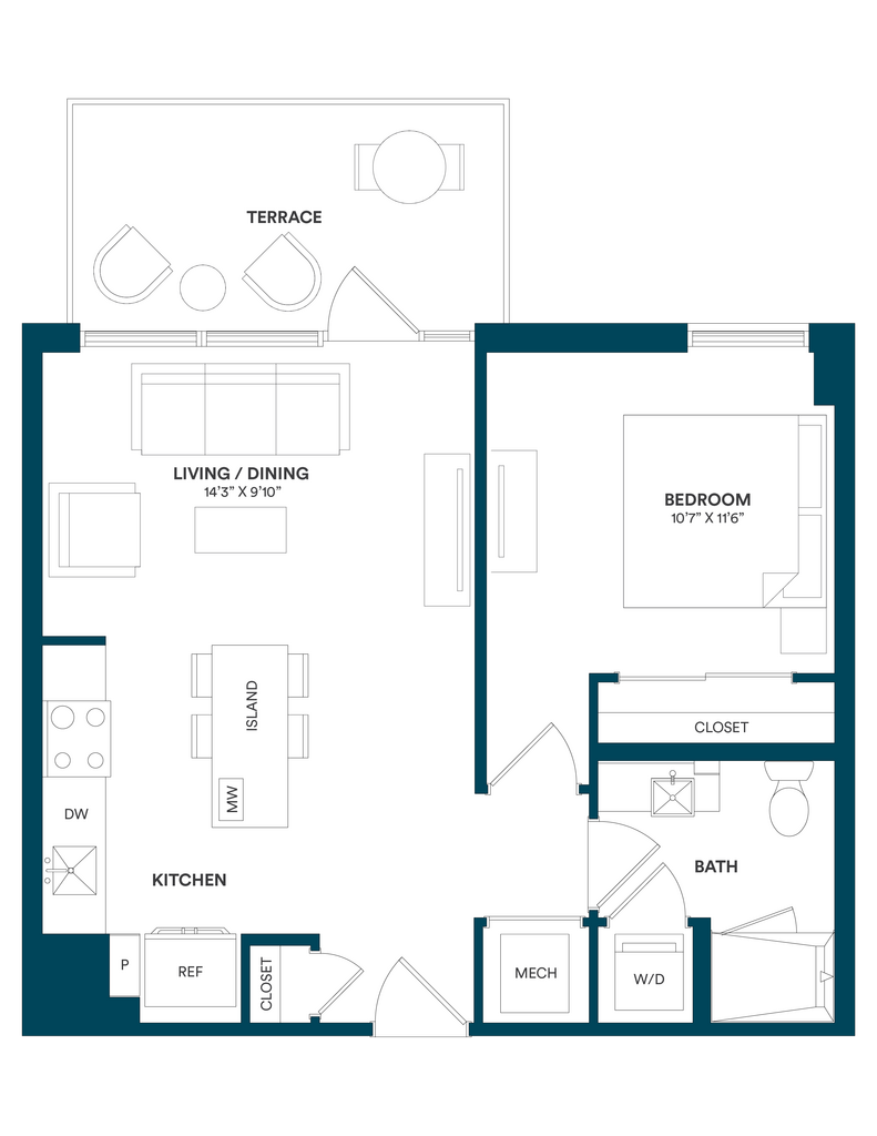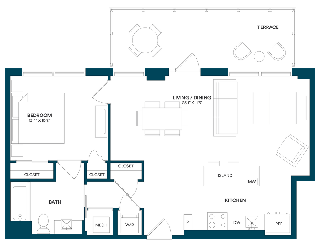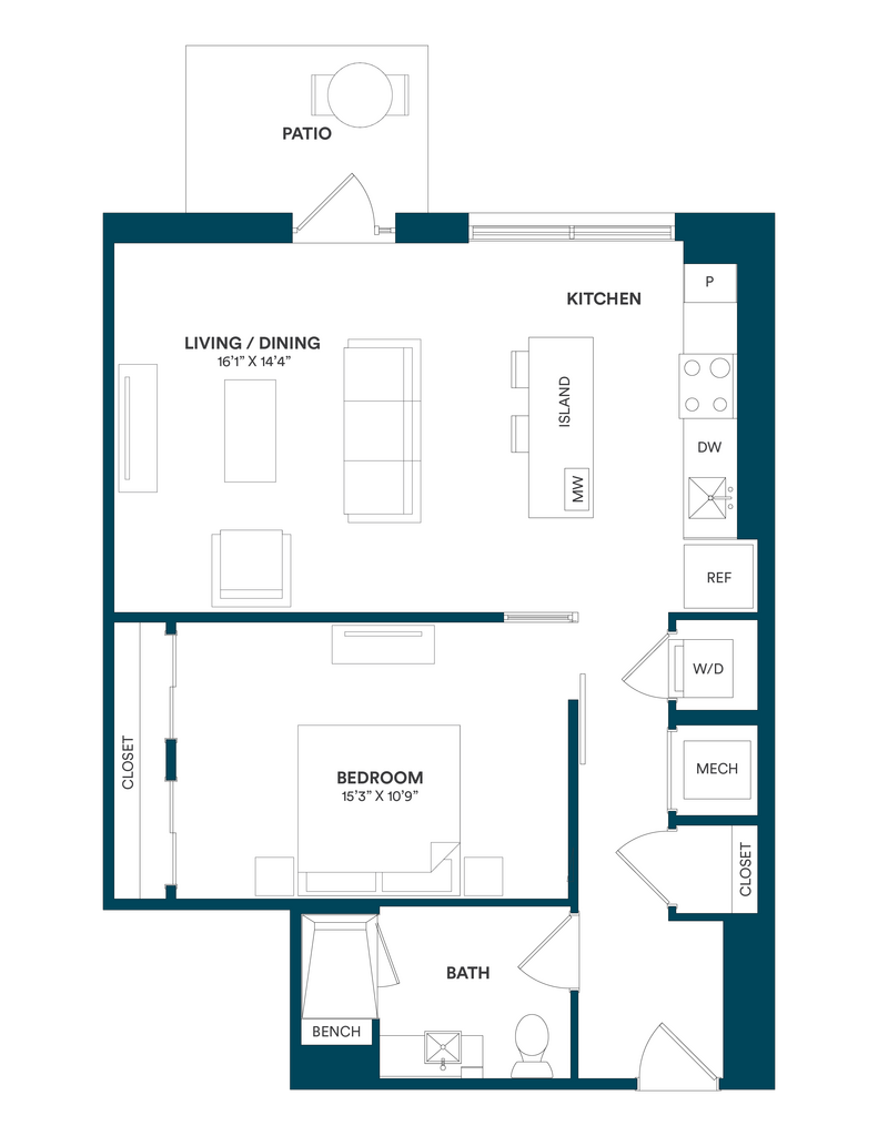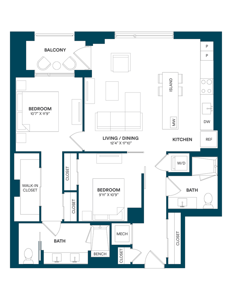 Studio-C TYP 12 - Floorplan Apartment Unit: C-712Apartment Model: Studio-C TYP 12$2,169Studio, 1 Bath, 499 sq ftAvailable Now![]()