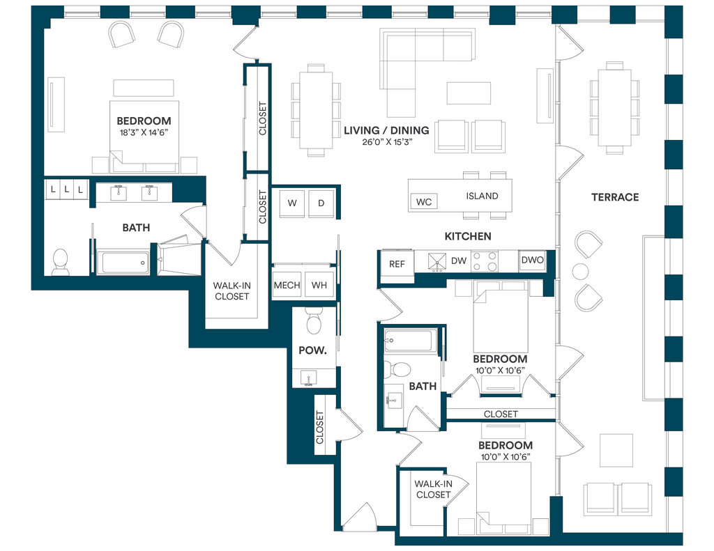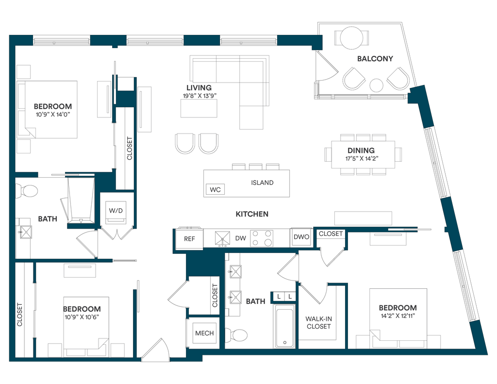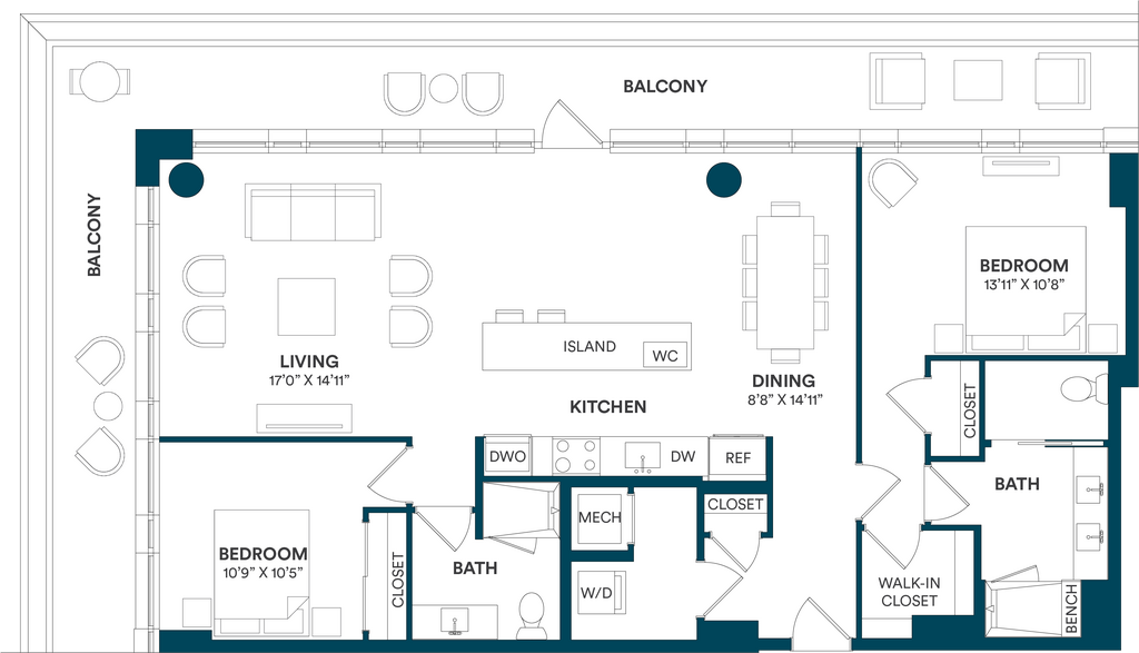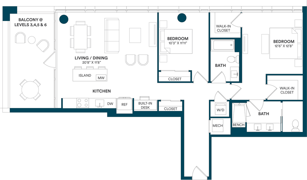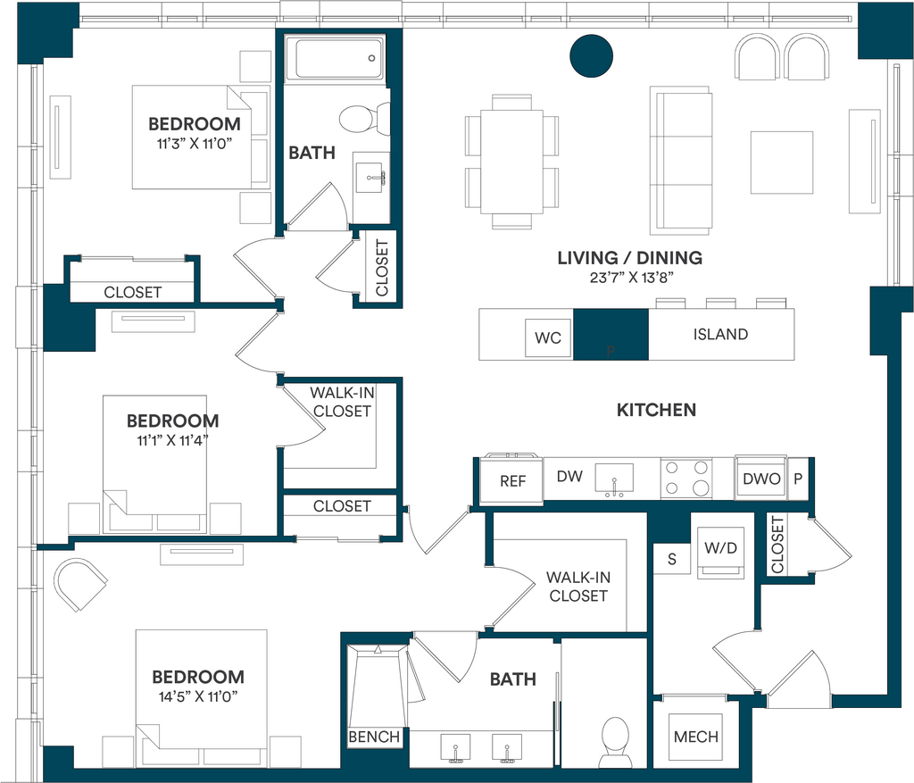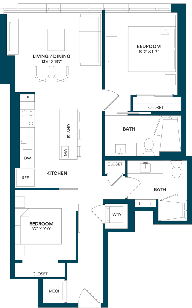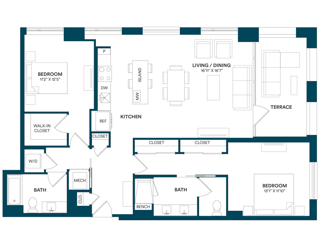 Studio-C TYP 12 - Floorplan Apartment Unit: C-712Apartment Model: Studio-C TYP 12$2,169Studio, 1 Bath, 499 sq ftAvailable Now![]()