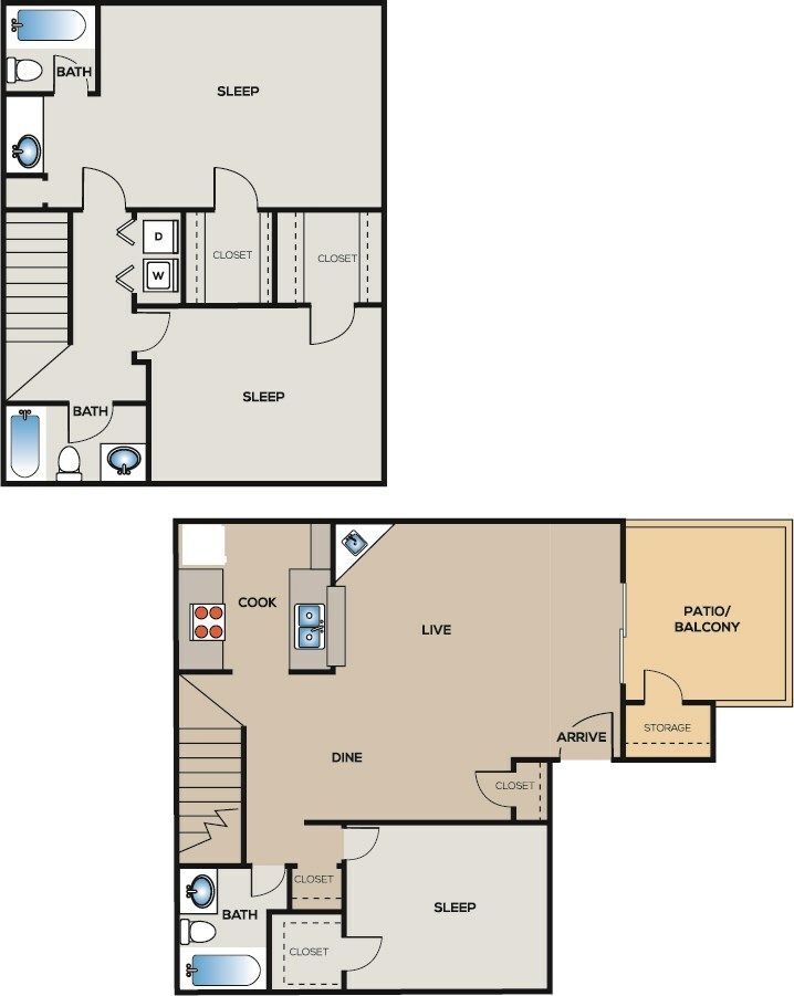2 Beds, 2 Baths, 1078 sq ftAvailable NowCheapest 2 BedroomThis is the cheapest 2 Bedroom at this PropertyModel Gallery