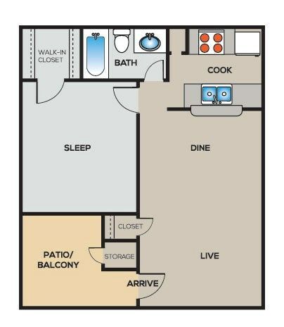 Apartment Model: A1PFrom $7811 Bedroom, 1 Bath, 678 sq ftAvailable NowFloorplansPhotos![]()