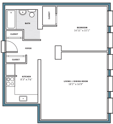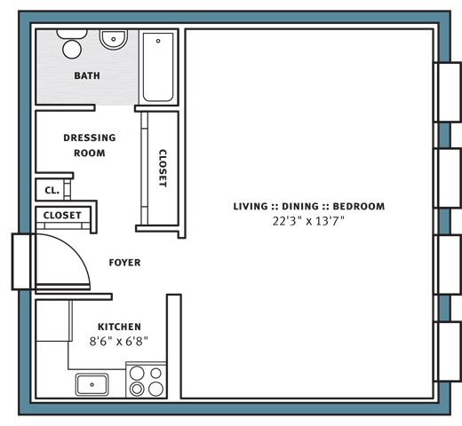 Studio, 1 Bath, 460 sq ftAvailable NowModel Gallery