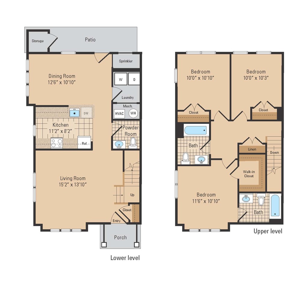 2 Beds, 1.5 baths - Floorplan 1 3 Bedrooms