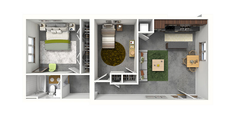 1 Bed, 1 Bath, 607-697 sq ftAvailable February 13, 2026Cheapest 1 BedroomThis is the cheapest 1 Bedroom at this PropertyModel Gallery
