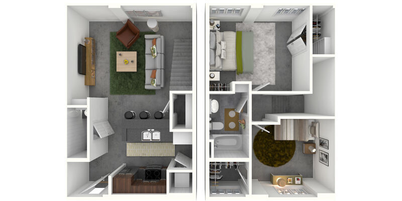 1 Bed, 1.5 Baths, 646-717 sq ftAvailable NowModel Gallery