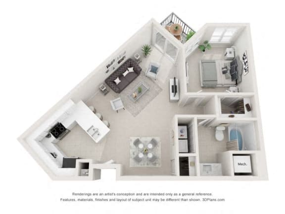 1 Bed, 1 Bath, 598 sq ftAvailable NowModel Gallery