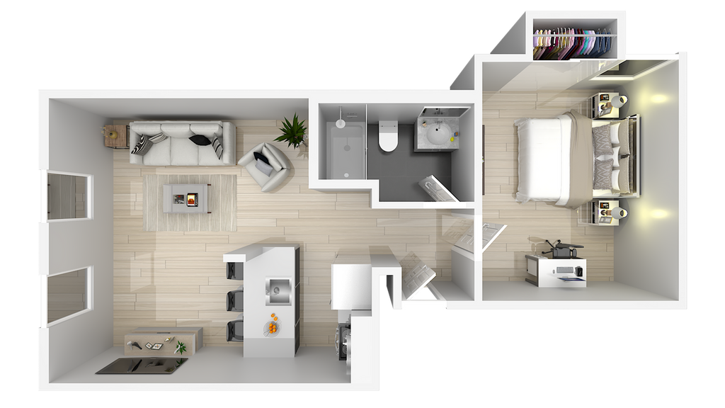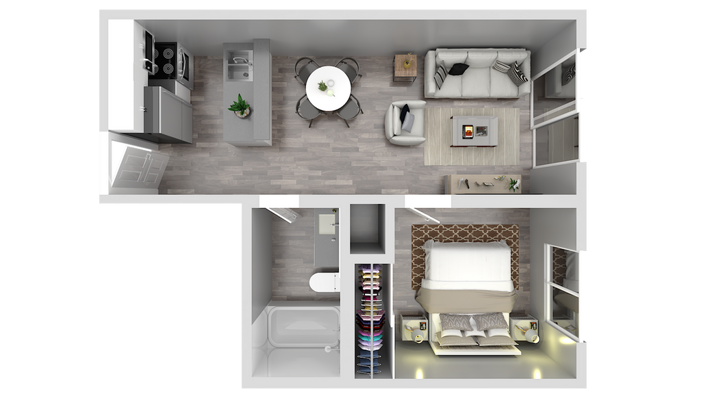 Studio, 1 Bath, 500 sq ftModel Gallery