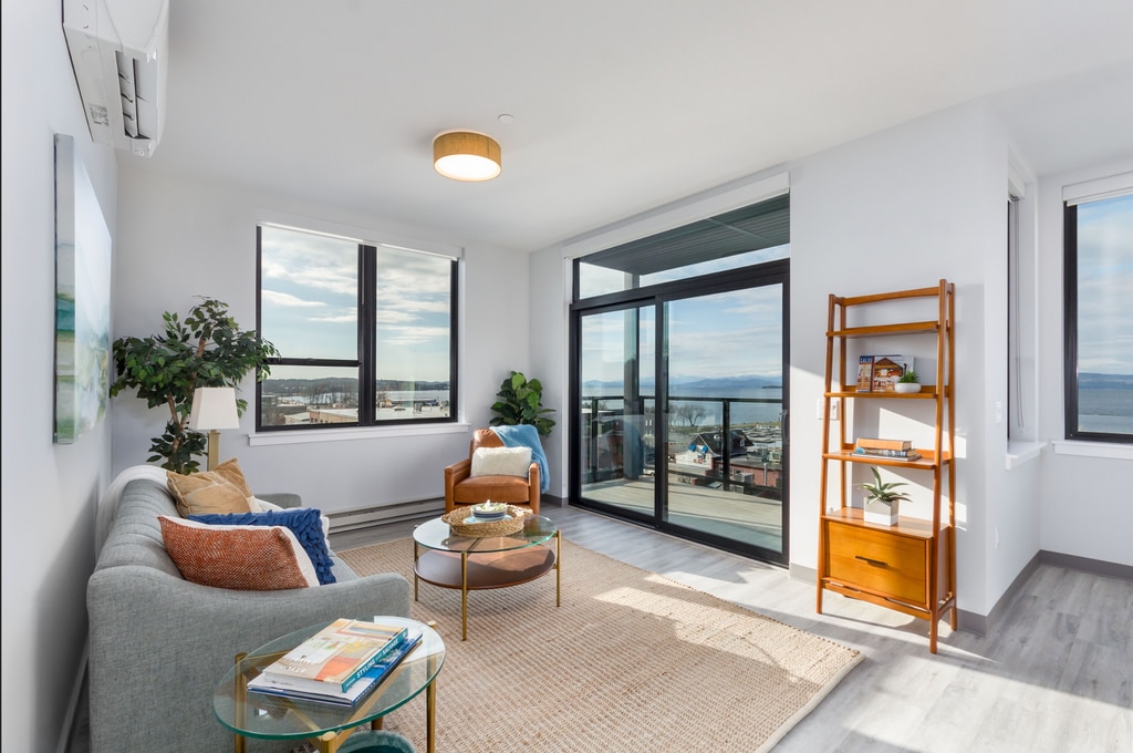 This luxury boutique apartment building has a washer and dryer in every unit, an indoor bike storage and maintenance area, a dog washing station, a fitness center, extra storage for rent, an inviting entryway, and expansive windows with lake, mountain and city views. Kitchens are equipped with stainless steel appliances, an apron sink, stone countertops and modern lighting; and every unit is equipped with state-of-the-art fresh air ventilation and air conditioning. This infill development project was designed to fit into the unique neighborhood settings. Its incredible location is a block and a half from the waterfront, Church street and is adjacent to some of the best restaurants and cafes in the City. Just next door is August First Bakery. They offer fresh baked goods, coffee and lunch just a few steps from your front door.