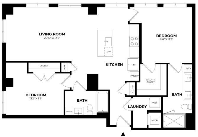 Apartment Unit: 621Apartment Model: 1 Bed/1 Bath-A7$3,7051 Bedroom, 1 Bath, 703 sq ftAvailable November 28, 20251 Bed/1 Bath-A2