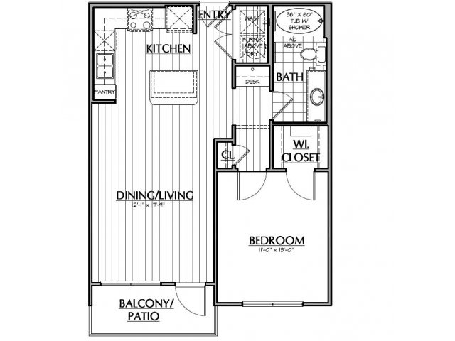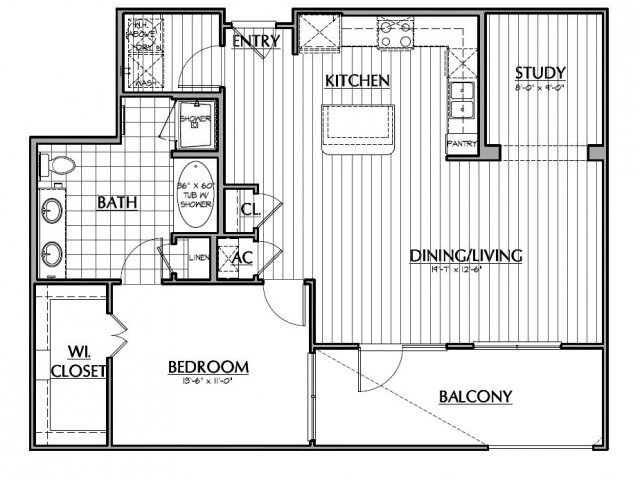 Apartment Model: A1.1 – One bedroom, one bath home with 633 s.f.1 Bedroom, 1 Bath, 633 sq ftUnavailable![]()
