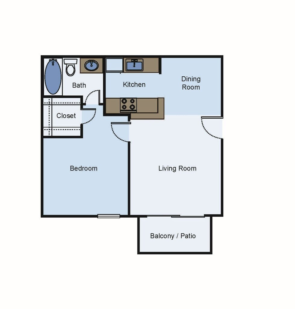1 Bed, 1 Bath, 590 sq ftAvailable NowModel Gallery
