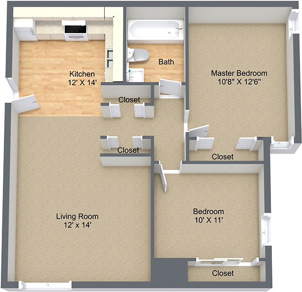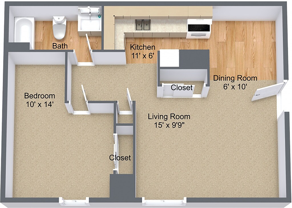 2 Beds, 1 Bath, 690 sq ftModel Gallery