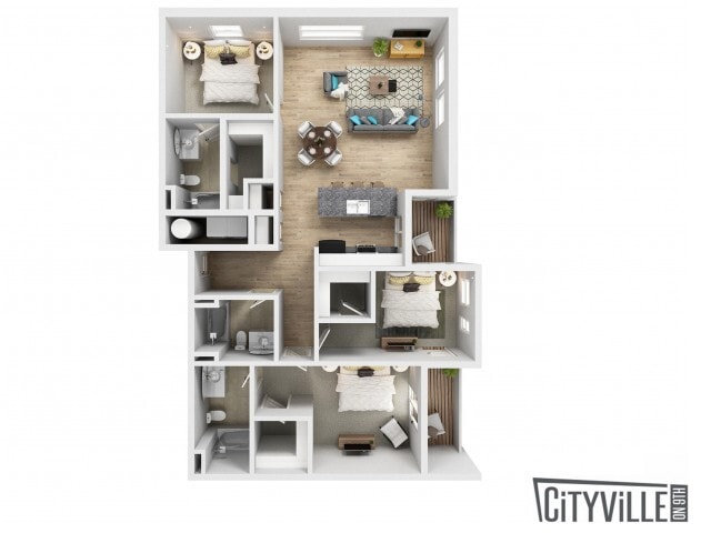 Cityville offers Studio to 3 Bedroom apartments starting from $950 and having 453–1,425 sq ft. Here is the current pricing and availability: