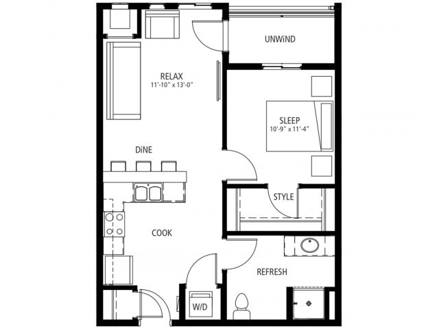 Apartment Model: Riverwalk - A1$1,2151 Bedroom, 1 Bath, 632 sq ftAvailable Now![]()