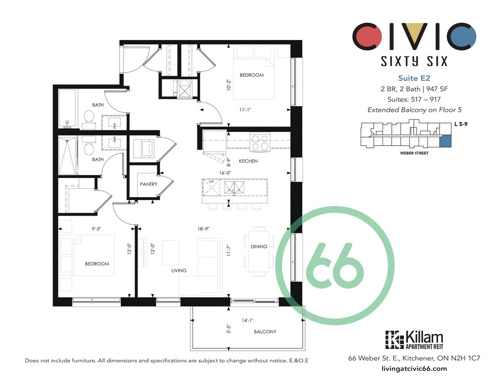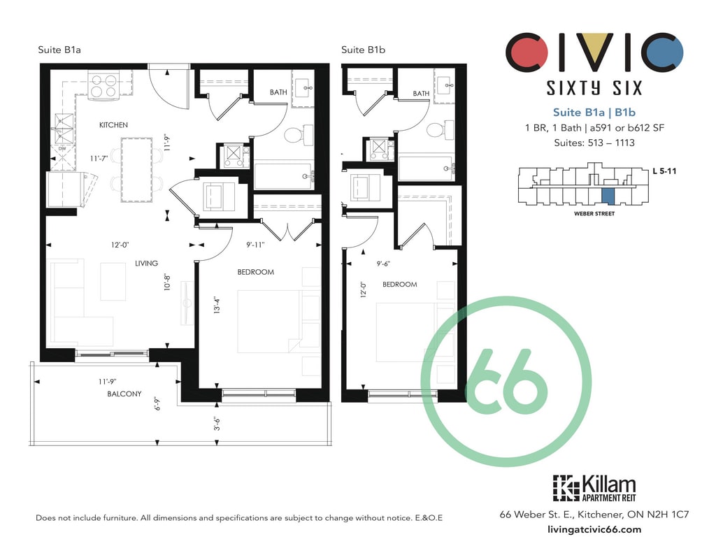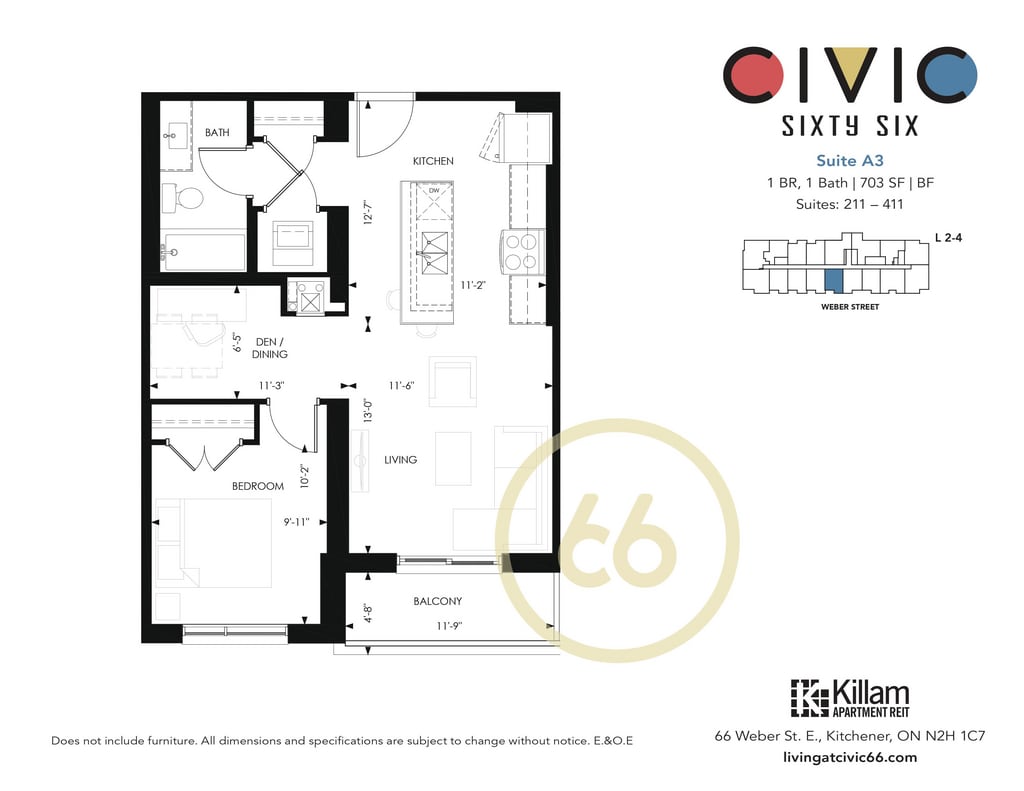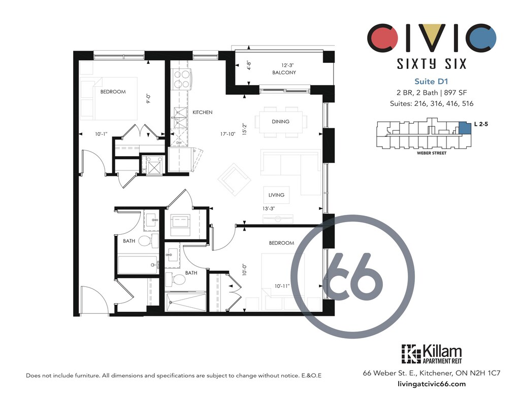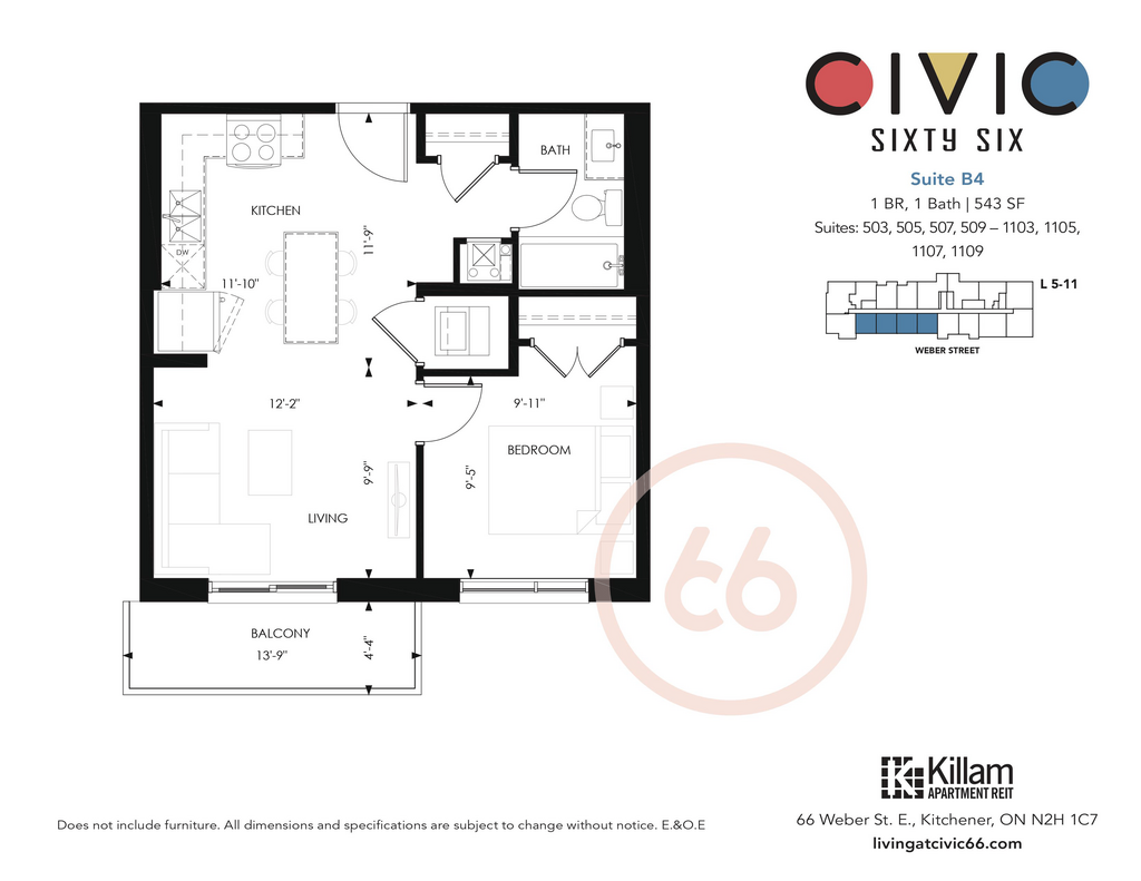Civic 66 is located at 66 Weber St E near the Kitchener Central area of Kitchener, ON