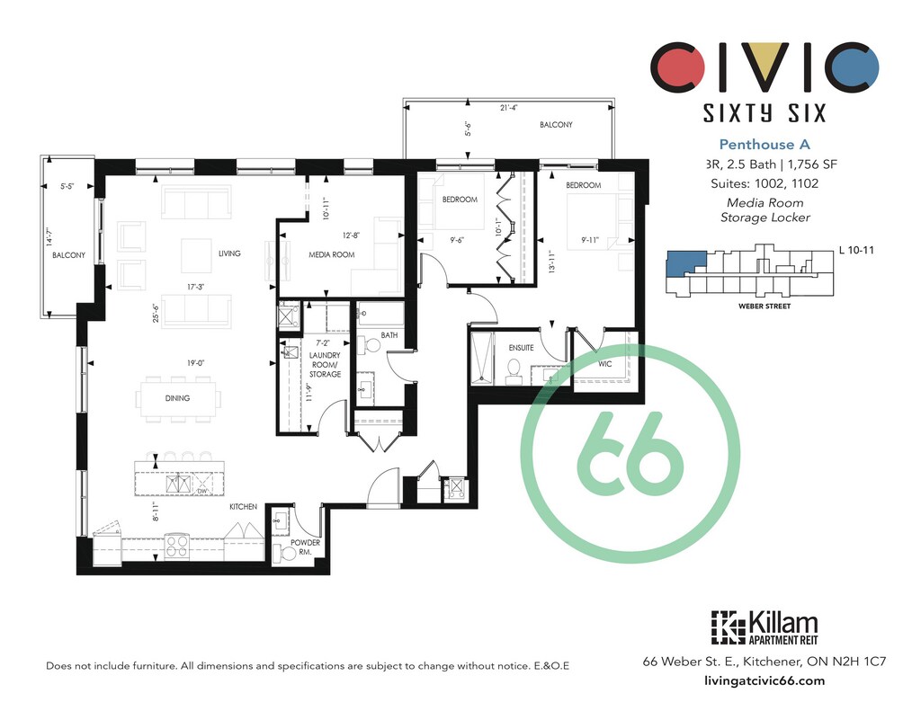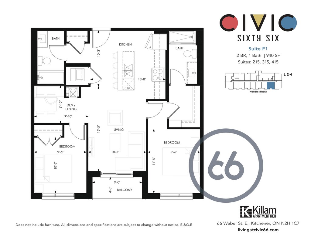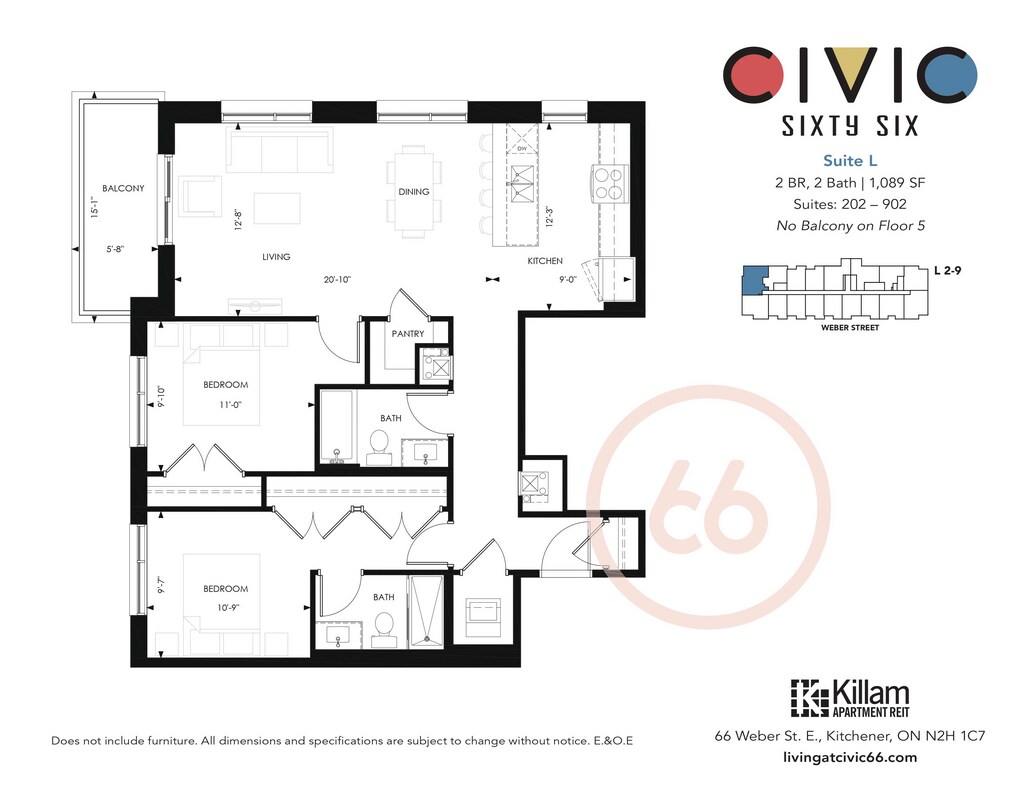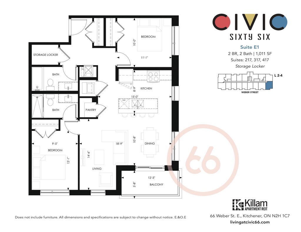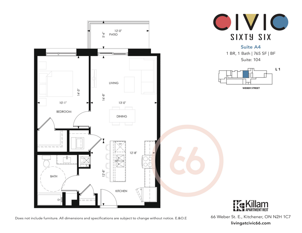 Civic 66 is located at 66 Weber St E near the Kitchener Central area of Kitchener, ON