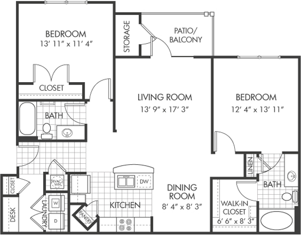 2 Beds, 2 Baths, 1236 sq ftLargest 2 BedroomThis is the largest 2 Bedroom at this PropertyModel Gallery