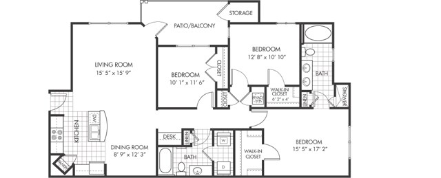 Apartment Model: C13 Bedroom, 2 Bath, 1365 sq ftUnavailable![]()