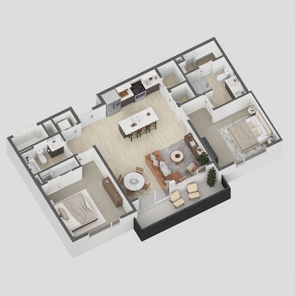 2 Beds, 2 Baths, 1220 sq ftModel Gallery